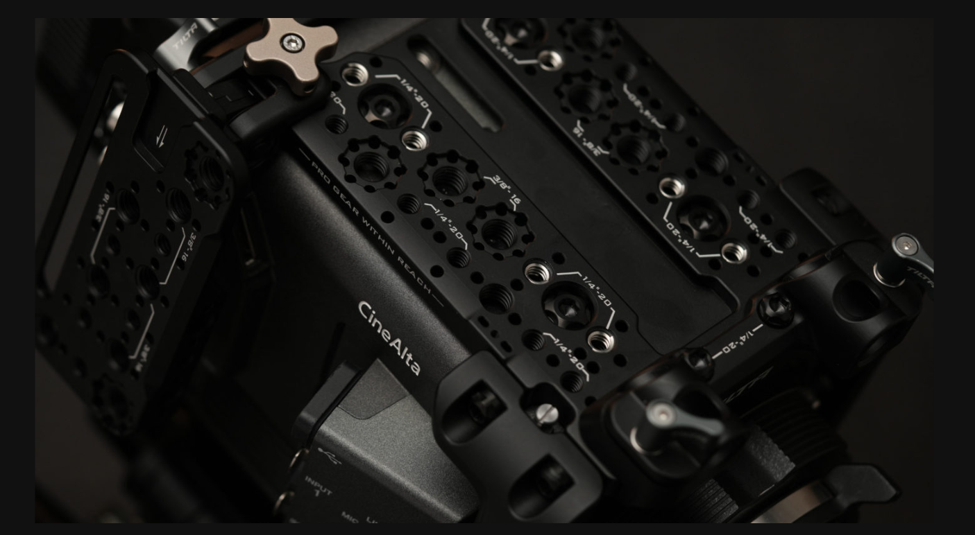 Sada Tilta ESR-T18-B-V Pro Kit, speciálně navržená pro vlajkovou loď Sony 8K BURANO, promění již tak výkonnou kinematografickou kameru v plně modulární, ramenní/gimbal/studio-ready pracovní nástroj bez zbytečného přibývání na váze. Klec, která se přizpůsobí tvaru kamery, zachovává původní polohy rozet ARRI, takže standardní ovládací rukojeť Sony funguje perfektně, a zároveň přidává desítky závitů 1/4"-20 a 3/8"-16 (s polohovacími kolíky), přední/horní/boční 15mm svorky na tyče a rychloupínací 15mm základnu LWS se standardním rybinovým spojem ARRI. Součástí balení je bateriová deska V-Mount, která nabízí rozsáhlé výstupy napájení (14,8 V P-Tap, 24 V a 14,8 V 3pinový Fischer, 2pinový LEMO, 65 W USB-C PD a 6pinový DC vstup) pro světla, monitory, bezdrátové sledování zaostření atd. Otočný držák EVF, výškově nastavitelná boční deska, multifunkční horní rukojeť a kompaktní sada nástrojů doplňují tento balíček připravený k natáčení, kterému důvěřují špičkové půjčovny a kameramani po celém světě.