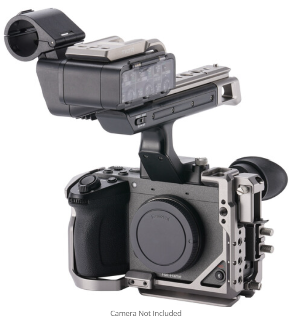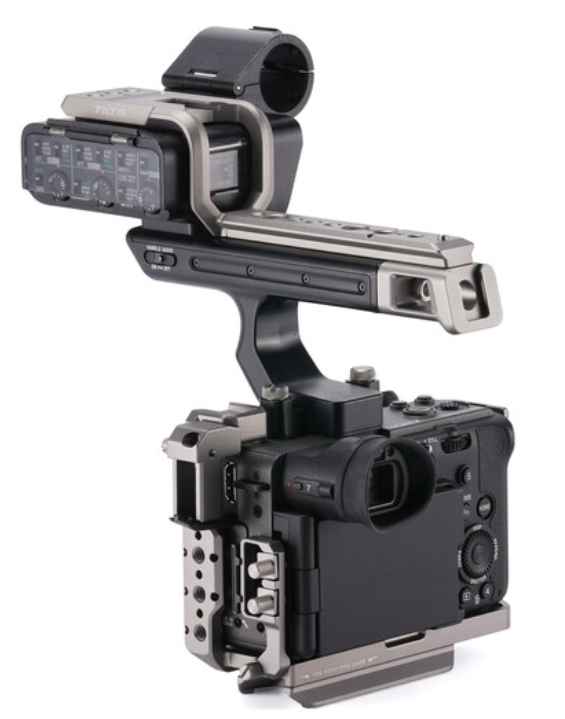 Sada Tilta TA-T88-A-TG Lite Kit promění kompaktní Sony FX2 v plně profesionální filmovou výbavu bez zbytečného přibývání na objemu. Tento komplexní balíček obsahuje tvarovanou plnou klec s integrovanou boční NATO lištou a studnou patkou, odnímatelnou obousměrnou základnu, která podporuje jak rychlouzávěr DJI RS gimbalu, tak standardní stativy Arca-Swiss, horní prodlužovací držák XLR-H1, který obnovuje montážní prostor při použití jednotky XLR od Sony, a speciální svorky HDMI a USB-C/Multi, které zabraňují poškození portů. Každý závit je vybaven protiskrutkovými polohovacími kolíky a otevřená kostrová konstrukce zaručuje nulové omezení tlačítek, dvířek baterie nebo kloubového displeje. Celý systém o hmotnosti 160 g (pouze klec) je vyroben z elegantního titanově šedého hliníku a představuje dokonalou rovnováhu mezi mobilitou a rozšiřitelností pro velké produkce.