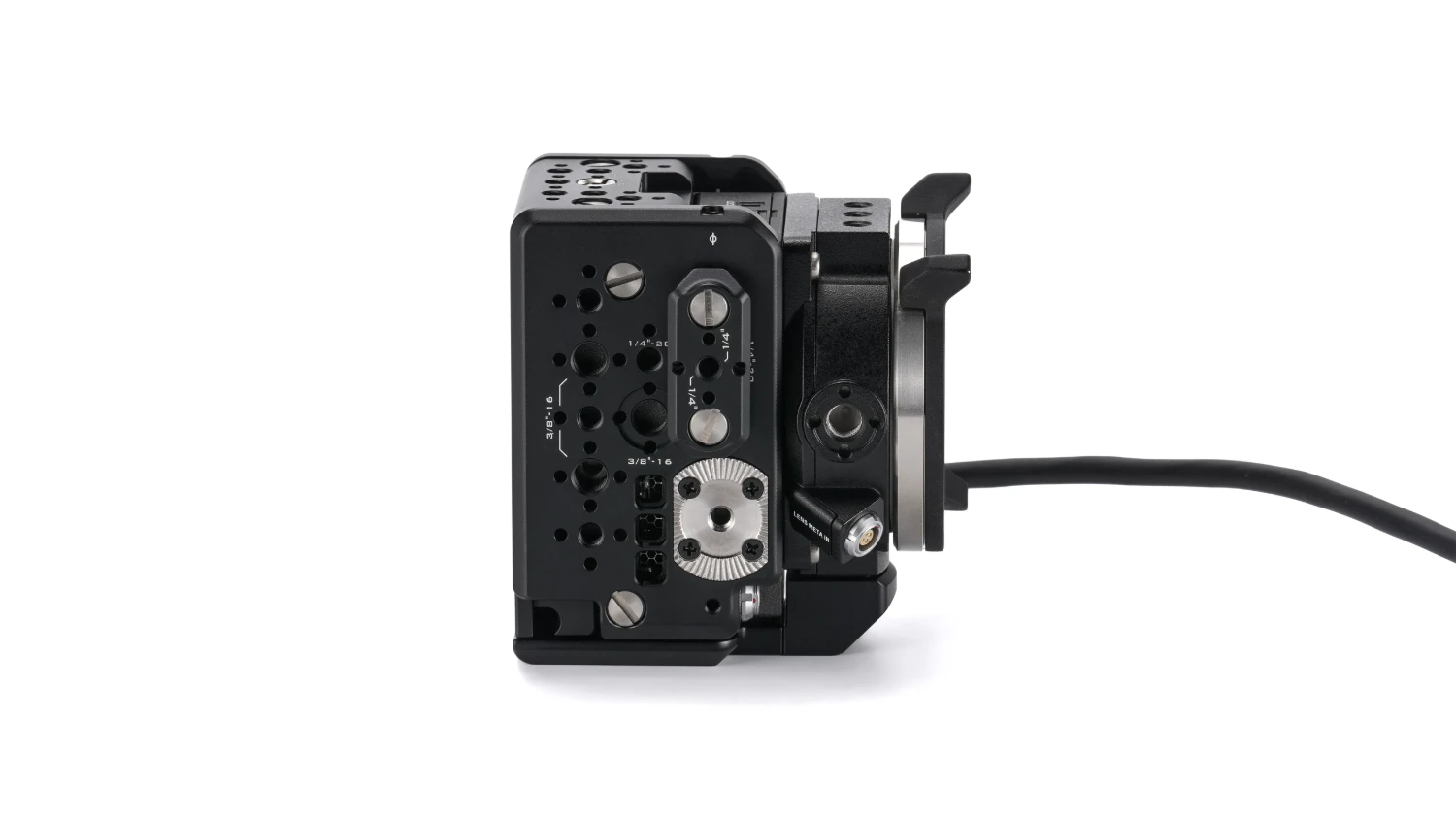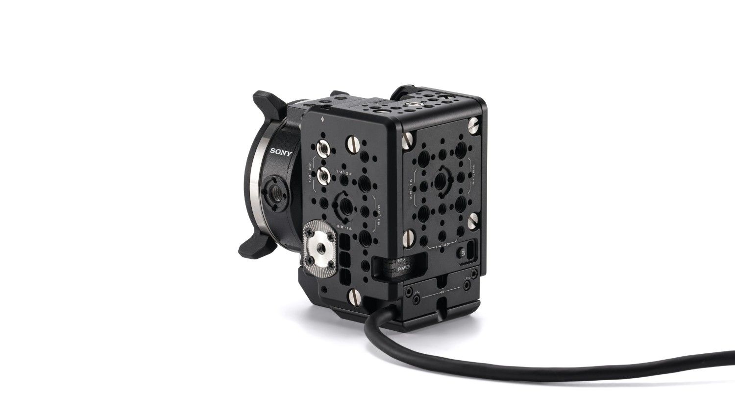 Klíčové funkce kamery zůstávají plně přístupné, včetně neblokovaného přístupu ke slotu pro interní ND filtr pro rychlou instalaci a výměnu filtrů. Klec také zvyšuje stabilitu PL objektivu díky upevnění Sony PL-E adaptéru čtyřmi montážními šrouby u základny, což výrazně zlepšuje tuhost při použití těžších kinematografických objektivů.