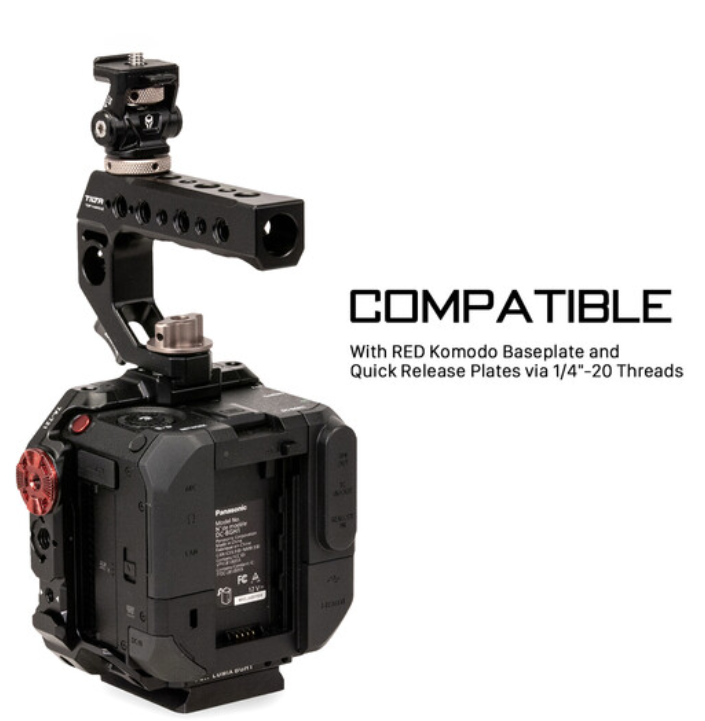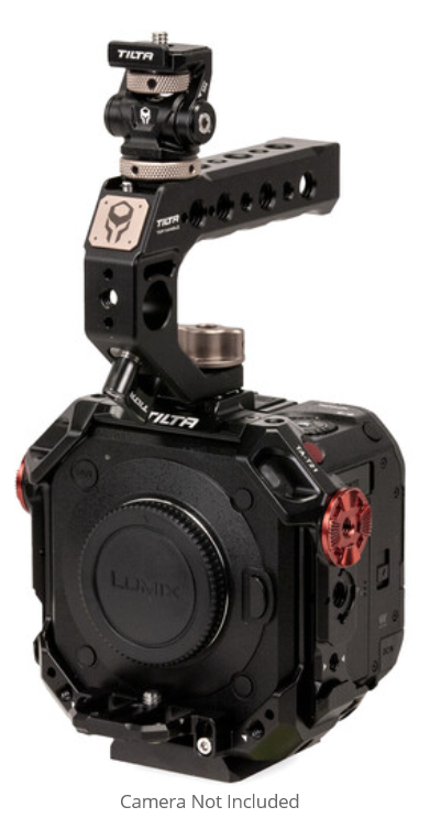 Sada TA-T21-B-B Kit B od společnosti Tilta je špičková profesionální sada příslušenství pro fotoaparáty Panasonic Lumix BGH1 (a BS1H). Hliníkový rám, který přesně kopíruje tvar kamery, obepíná především přední část kamery a dodává jí elegantní, nenápadný vzhled, přičemž nabízí rozsáhlé možnosti upevnění: tři studené patky, dvě lišty NATO, dvě rozety ARRI M6, několik závitů 1/4"-20 a 3/8"-16 a sedm spodních závitů pro stativ pro dokonalé vyvážení gimbalu. Součástí balení je lehká horní rukojeť s rychloupínáním, která nabízí další studený blesk a 15mm port pro tyč, zatímco držák monitoru s nastavitelným napětím umožňuje rychlé a bezpečné umístění monitoru. Dvojité desky s rychloupínáním se připevňují přímo ke spodní části klece pro okamžitou výměnu stativu nebo hlavy a speciální podpora adaptéru EF s nastavitelnými drážkami zajišťuje pevnou stabilitu adaptéru objektivu.
