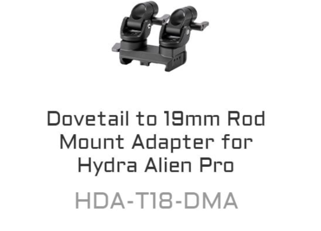 Adaptér Tilta HDA-T18-DMA pro připevnění na tyč 19 mm je odolný hliníkový můstek v barvě Space Grey, který přeměňuje základnu ARRI standardu Hydra Alien Pro Shock Absorbing Arm na pevnou 19 mm svorku pro studiové tyče, což vám umožňuje připevnit rameno s nosností 20 kg přímo na 19 mm Speed Rail, lešení nebo jakoukoli 19mm trubku pro ultrapevné nadhlavní, boční nebo vlastní vozidlové uchycení.
