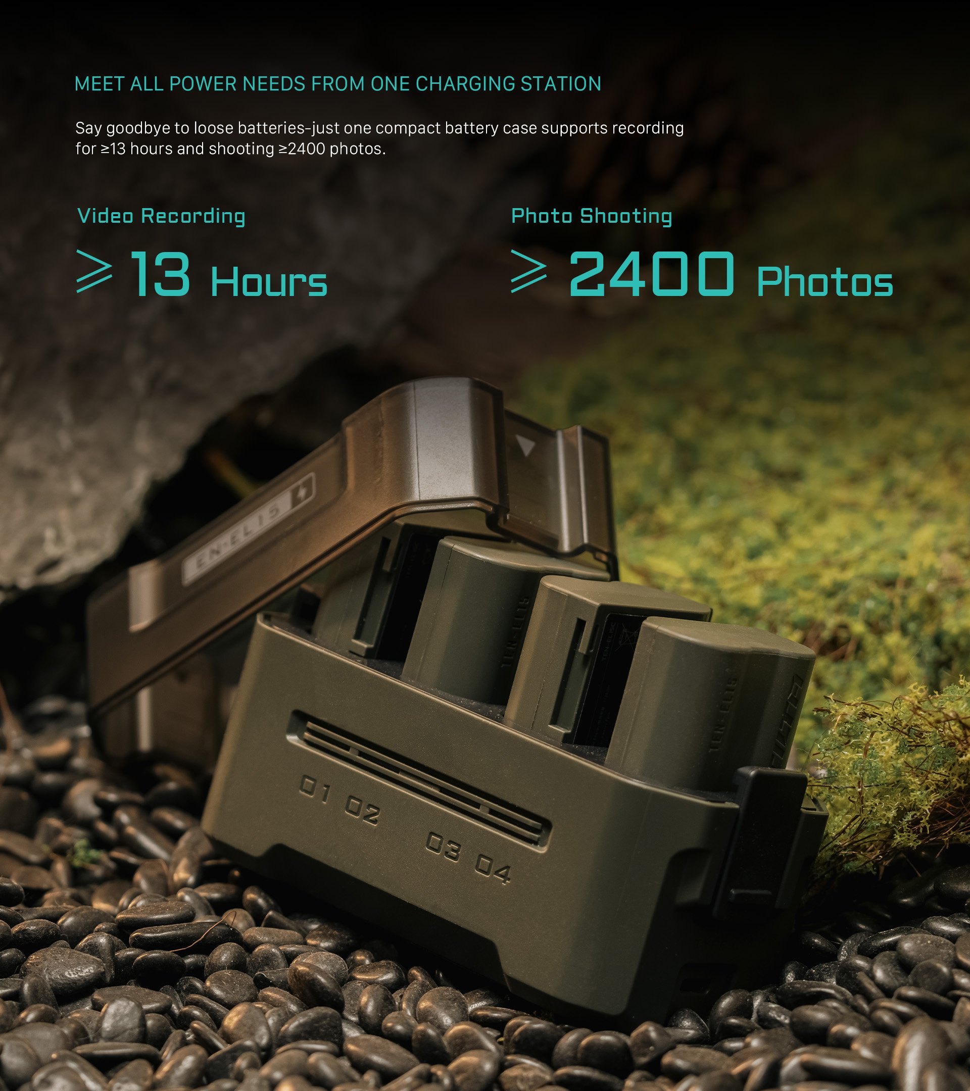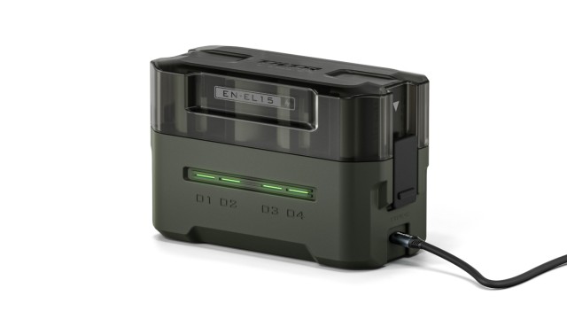 Díky schopnosti plně nabít čtyři baterie EN-EL15C budou uživatelé připraveni až na 13 hodin záznamu videa nebo dostatek energie pro zpracování 2 400 fotografií, což je ideální pro dlouhé fotografování.