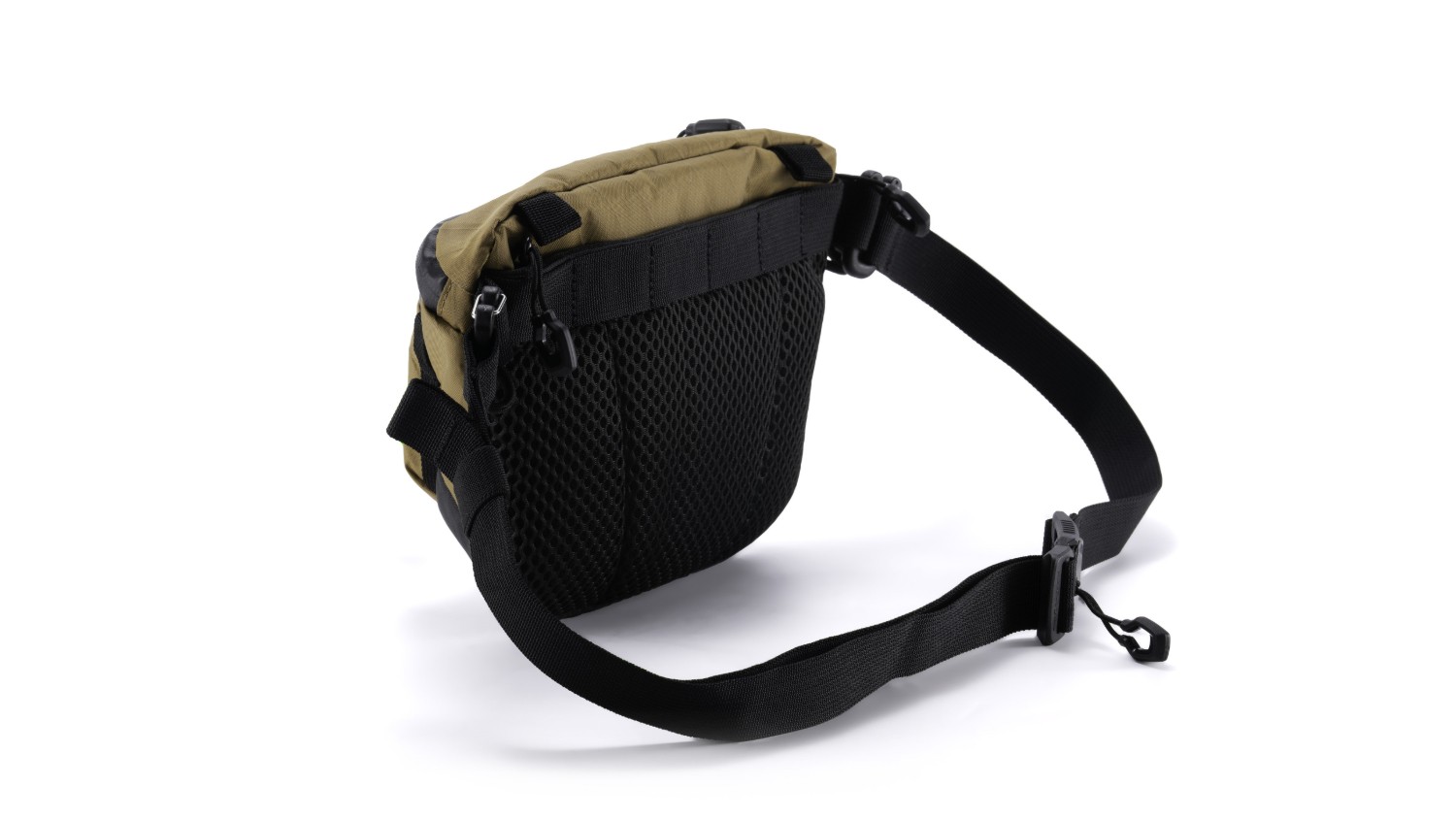 Tato taška se přizpůsobí vašemu životnímu stylu. Díky univerzálnímu systému zadního uchycení ji můžete pohodlně nosit kolem pasu, přes hrudník nebo připevnit k vašemu vybavení, což vám poskytuje personalizované možnosti nošení.