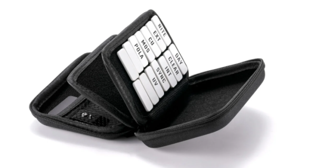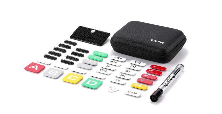 Sada filtrů a štítků pro kamery Tilta TA-FTK je praktický systém pro organizaci s barevným kódováním, který obsahuje velké štítky pro pozice kamer A/B/C/D, běžné štítky pro identifikaci filtrů, prázdné štítky pro mazání za sucha a uzávěry Dual Lock, které lze znovu uzavřít – vše uložené v kompaktním přenosném kufříku, aby bylo natáčení s více kamerami a výměna filtrů rychlé, přehledné a bezchybné.