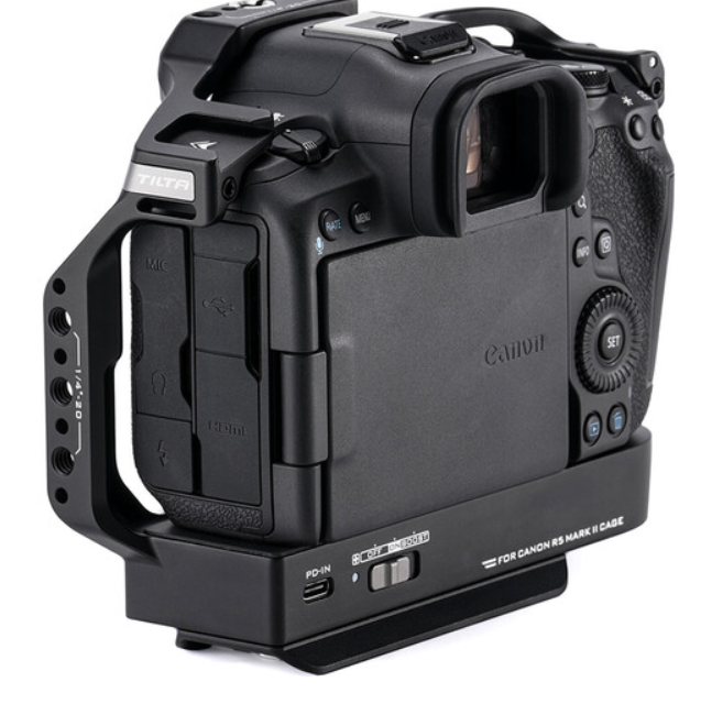 Tilta TA-T68-FCC2-B je kamerový rám nové generace, který řeší tepelné omezení modelu R5 II a zároveň výrazně rozšiřuje možnosti upevnění. Jeho vestavěný ventilátor s proměnnou rychlostí inteligentně upravuje proudění vzduchu, aby udržoval teplotu snímače pod kontrolou během delšího záznamu v rozlišení 8K RAW, 4K 120 fps nebo při vysoké snímkové frekvenci, ale v režimu nízké rychlosti zůstává tichý jako šepot. Přesně opracovaný rám z hliníkové slitiny s měkkým silikonovým polstrováním bezpečně obepíná kameru, aniž by blokoval tlačítka, sloty pro karty nebo kloubový displej, a obsahuje několik závitů 1/4"-20 a 3/8"-16 proti kroucení, vestavěnou desku Arca-Swiss, studený blesk a dva napájené porty USB-C. Ideální pro tvůrce dokumentárních filmů, svatebních videí a filmů, kteří vyžadují neomezenou dobu provozu bez přidávání objemu.