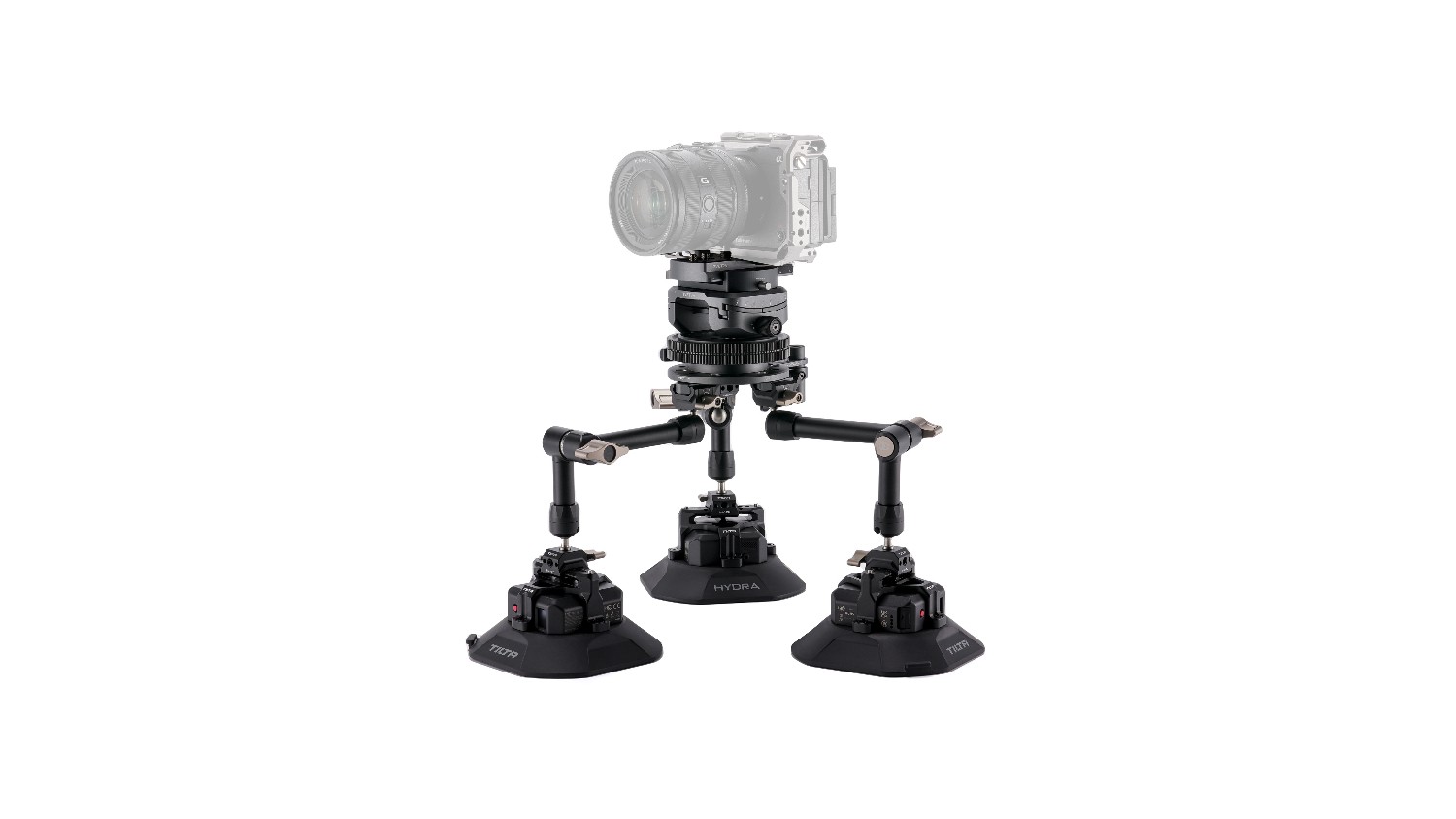 Sada Tilta Hydra x Dan Ming Speed Pan System Pro Kit je výsledkem jedinečné spolupráce a byla vyvinuta pro vysokorychlostní dynamické natáčení. Tento systém umožňuje uživatelům dosáhnout přesných, téměř okamžitých panoramatických záběrů o více než 360 stupních pomocí bezdrátového motoru pro sledování zaostření (není součástí balení). Díky univerzálnímu designu je kompatibilní s širokou škálou kamer, včetně akčních kamer, bezzrcadlovek a kamer typu box. Základem systému je otočná základna s ozubenými koly a nastavitelnou osou naklonění pro flexibilní rámování. Duté provedení hlavy umožňuje čistý průchod kabelů a zabraňuje jejich zamotání. Pro Kit obsahuje tři elektronické přísavky a odolná kloubová ramena, která zajišťují bezpečné upevnění na vozidlech a jiných površích, s rychlostí až 75 mph (120 km/h). S nosností až 7 liber (3,5 kg) je tento systém ideální pro zachycení rychlé akce. Více montážních bodů, včetně NATO kolejnic a závitů ¼"-20, zajišťuje univerzálnost pro různé kreativní scénáře natáčení.