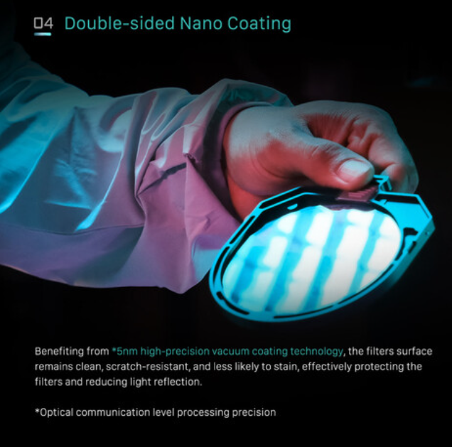 Filtr Tilta TF-95-BS 95 mm Illusion Blue Streak Filter transformuje běžná bodová světla na nápadné, protáhlé modré odlesky připomínající klasické anamorfní sklo. Filtr se otáčí o 360° uvnitř 95mm svorkového držáku Mirage, což vám dává plnou kreativní kontrolu nad směrem odlesků bez nutnosti přemísťovat matnou skříňku. Je vyroben z vysoce kvalitního optického skla s vícevrstvým nano povlakem na obou stranách, který zachovává výjimečnou ostrost a věrnost barev a zároveň výrazně snižuje odrazy, otisky prstů a škrábance. Nezbytný nástroj pro kameramany, kteří chtějí dosáhnout anamorfní estetiky „modré čáry“ na cenově dostupných sférických objektivech nebo při natáčení s otevřenou clonou/variscopem.