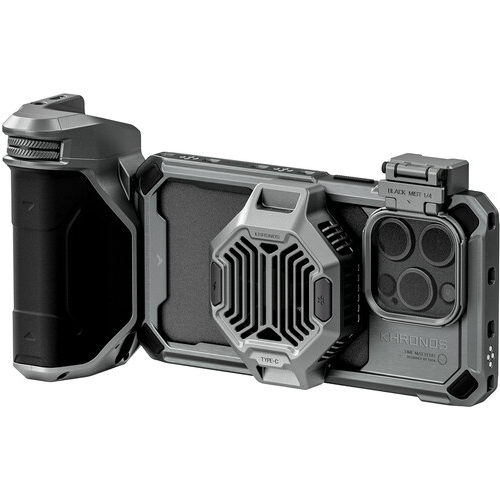 Sada Tilta Khronos iPhone 15 Pro Advanced Kit ve vesmírně šedé barvě je komplexní řešení pro mobilní filmaře. Tato komplexní sada obsahuje pouzdro Khronos iPhone 15 Pro, chladicí systém, rukojeť PD pro zaostřování, zásobník na rychloupínací filtry a filtry ND 0,6 a 1,2. Je navržen s uzamykatelnou svorkou, umožňuje průchod napájení pro příslušenství a nabízí kompatibilitu s MagSafe a Bluetooth. Sada rovněž poskytuje všestranné možnosti nabíjení s multifunkčními možnostmi 5/10 W.