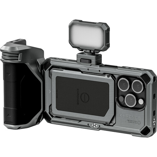 Základní sada Tilta Khronos iPhone 15 Pro ve vesmírně šedé barvě s baterií je určena speciálně pro nadšence do mobilního natáčení. Je vybavena pouzdrem Khronos iPhone 15 Pro, které poskytuje bezpečné uchycení a kompatibilitu s ekosystémem příslušenství Khronos. Sada obsahuje rukojeť Khronos Focus PD Handle pro lepší stabilitu a ovládání spolu se světlem Khronos Mini Daylight LED Light, které nabízí tři úrovně jasu a vysoký CRI 95 pro přesnou reprodukci barev. Díky nastavitelnému náklonu a horizontálnímu natočení získají filmaři přesnou kontrolu nad rámováním a kompozicí. Integrovaná baterie podporuje nabíjení přes USB-C, což zajišťuje dlouhodobou použitelnost bez přerušení.