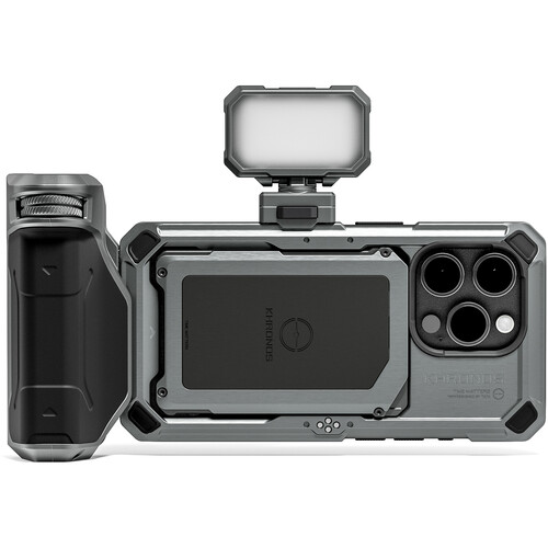 Základní sada Tilta Khronos iPhone 15 Pro ve vesmírně šedé barvě s baterií je určena speciálně pro nadšence do mobilního natáčení. Je vybavena pouzdrem Khronos iPhone 15 Pro, které poskytuje bezpečné uchycení a kompatibilitu s ekosystémem příslušenství Khronos. Sada obsahuje rukojeť Khronos Focus PD Handle pro lepší stabilitu a ovládání spolu se světlem Khronos…