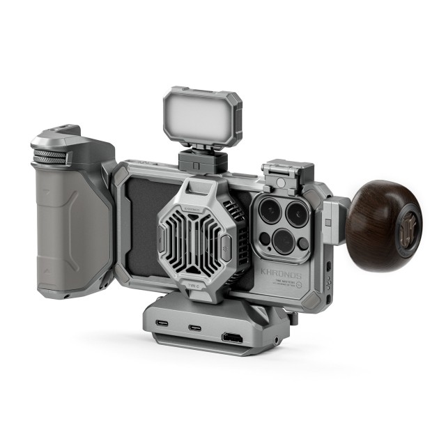 Součástí sady je také chladicí systém pro Khronos, který je vybaven 22W rozptylovačem tepla s proměnlivou frekvencí schopným. Stačí se připojit k externímu zdroji napájení přes USB-C nebo využít napájení z přiložené rukojeti k současnému nabíjení iPhonu a udržování jeho teploty při využití bezdrátového magnetického připojení MagSafe.