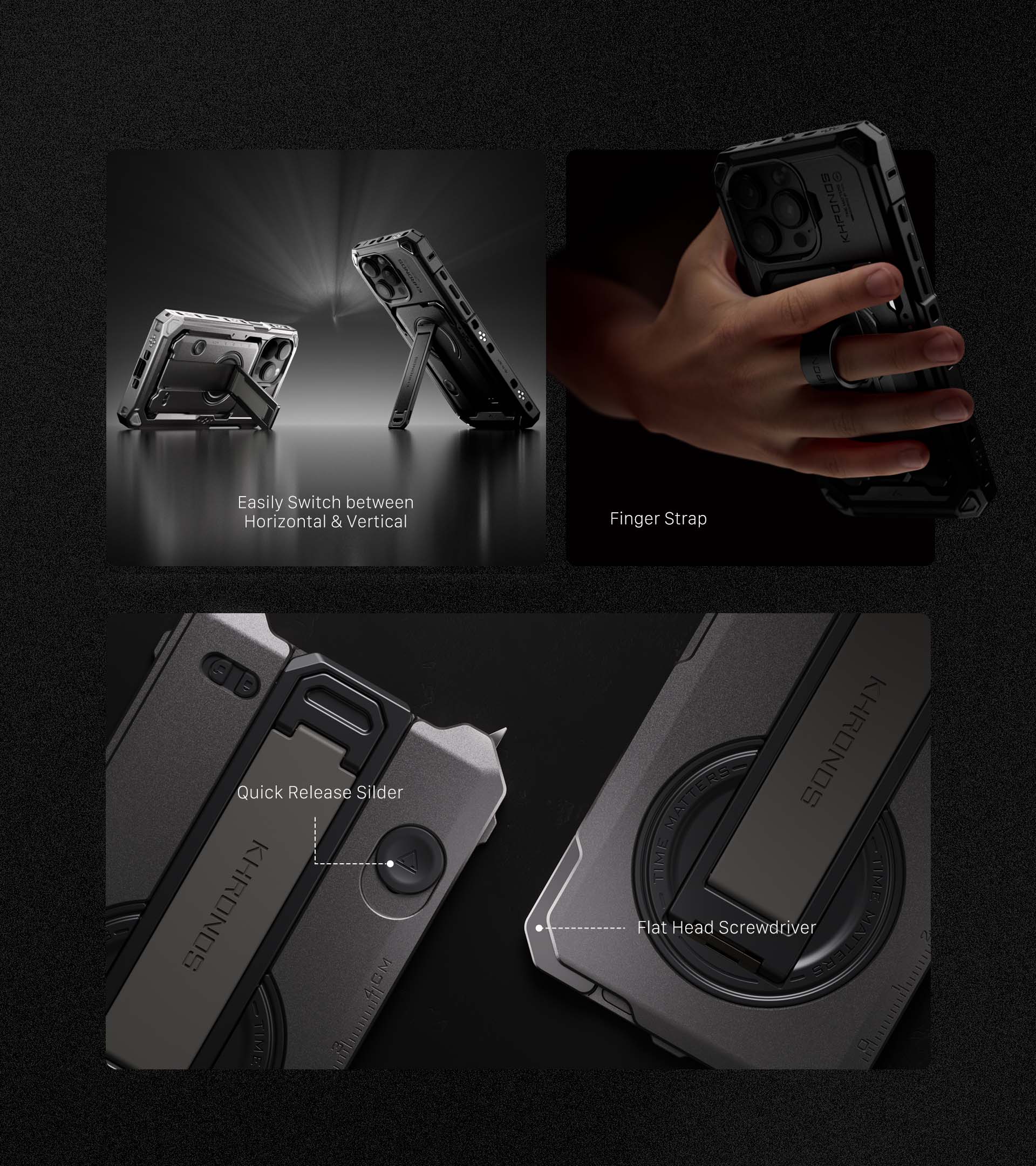 představujeme ruční sadu Khronos pro iPhone 16 Pro / Pro Max, novou generaci mobilního natáčení. Toto pouzdro na smartphone inspirované klecí na fotoaparát, pečlivě navržené pro oba modely iPhone 16, nabízí jedinečnou kombinaci funkčnosti a elegance. Pouzdro Khronos, vytvořené tak, aby chránilo telefon před každodenním opotřebením, nabízí spolehlivou ochranu, aniž by to bylo na úkor stylu nebo funkčnosti.