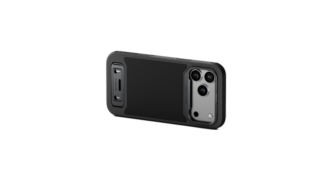Tilta Khronos Lite Case v černé barvě je lehké, profesionální ochranné pouzdro pro iPhone 17 Pro Max. Je vybaveno integrovaným stojánkem pro sledování bez použití rukou, magnetickou zadní deskou pro připevnění příslušenství a zesílenou ochranou fotoaparátu a rohů.