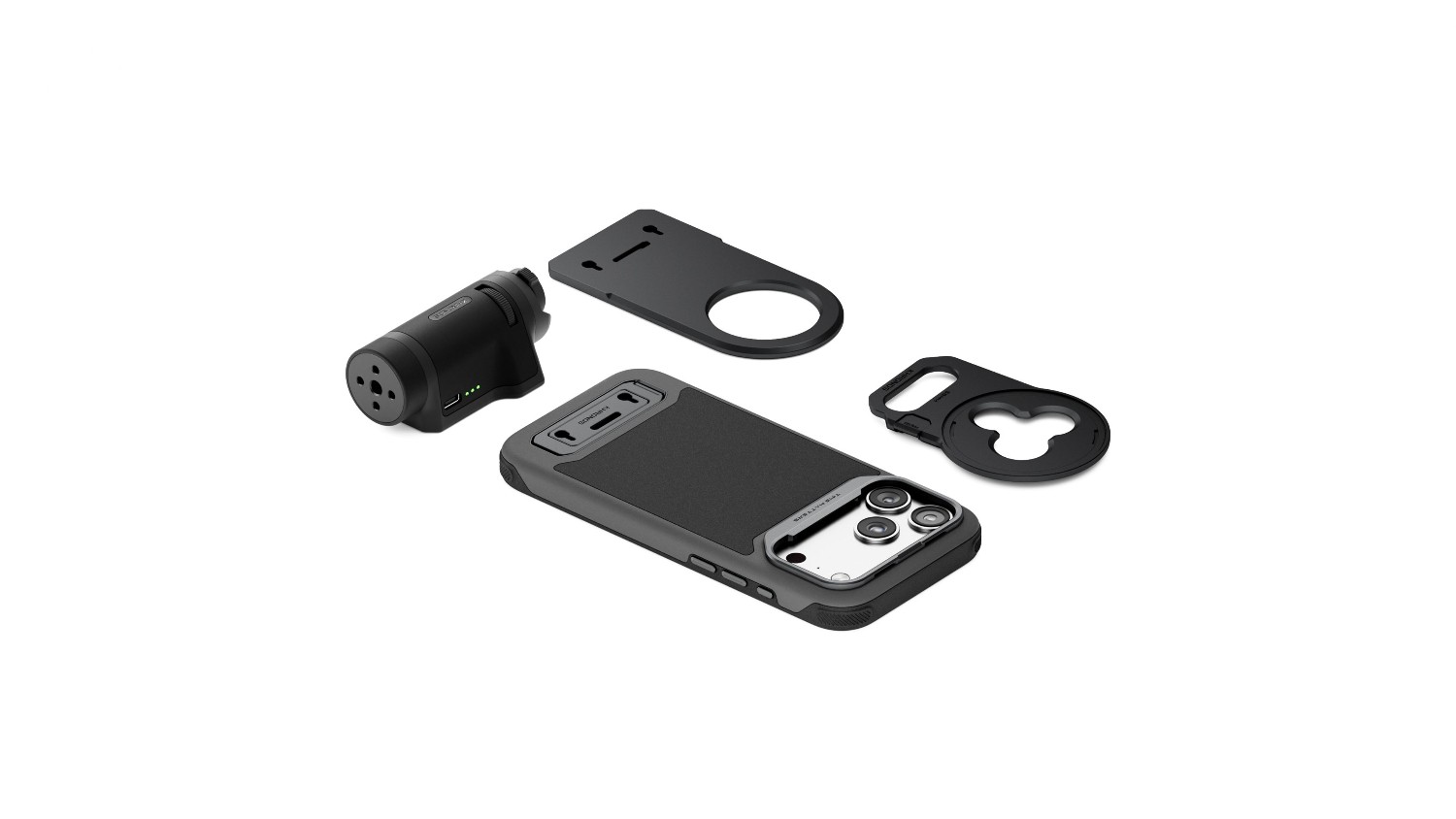 Sada Khronos Lite iPhone 17 Pro Max Handheld Kit poskytuje filmařům a tvůrcům obsahu efektivní řešení pro vylepšení videografie pomocí smartphonu. Sada, navržená speciálně pro iPhone 17 Pro Max, obsahuje lehké pouzdro a nově navrženou ergonomickou rukojeť, která se připevňuje přímo k podpěrce pouzdra. Díky tomuto upevňovacímu designu může rukojeť komunikovat se smartphonem přes Bluetooth, čímž zůstává USB-C port iPhone volný a umožňuje ovládání zaostření, zoomu, spouště a nahrávání přes aplikaci Black Magic Camera. Pouzdro obsahuje vestavěný stojánek, který podporuje horizontální i vertikální orientaci pro použití bez rukou. Magnetická zadní deska navíc podporuje magnetické příslušenství, jako jsou LED světla, SSD disky, powerbanky a chladicí ventilátory. Součástí balení je 58mm držák filtru, který umožňuje použití různých 58mm filtrů třetích stran pro komplexní kreativní a expoziční ovládání.