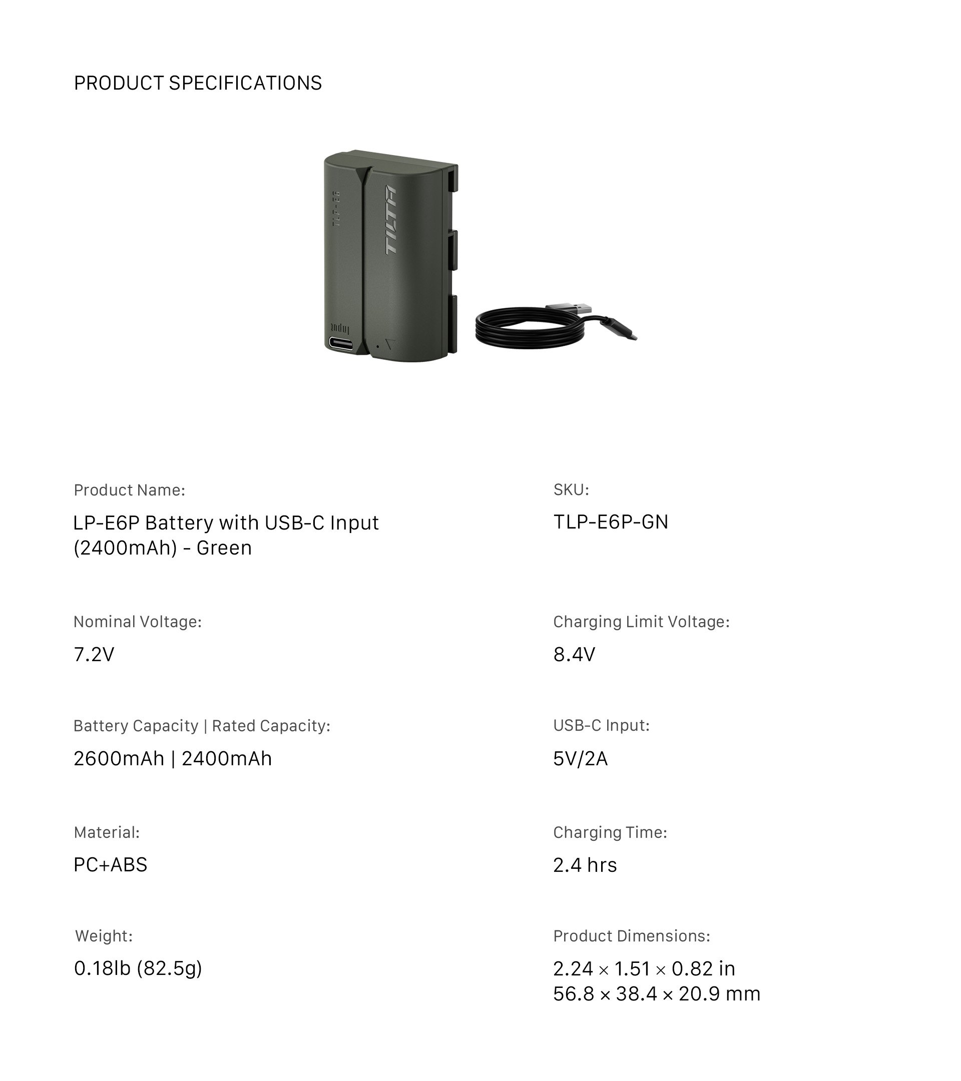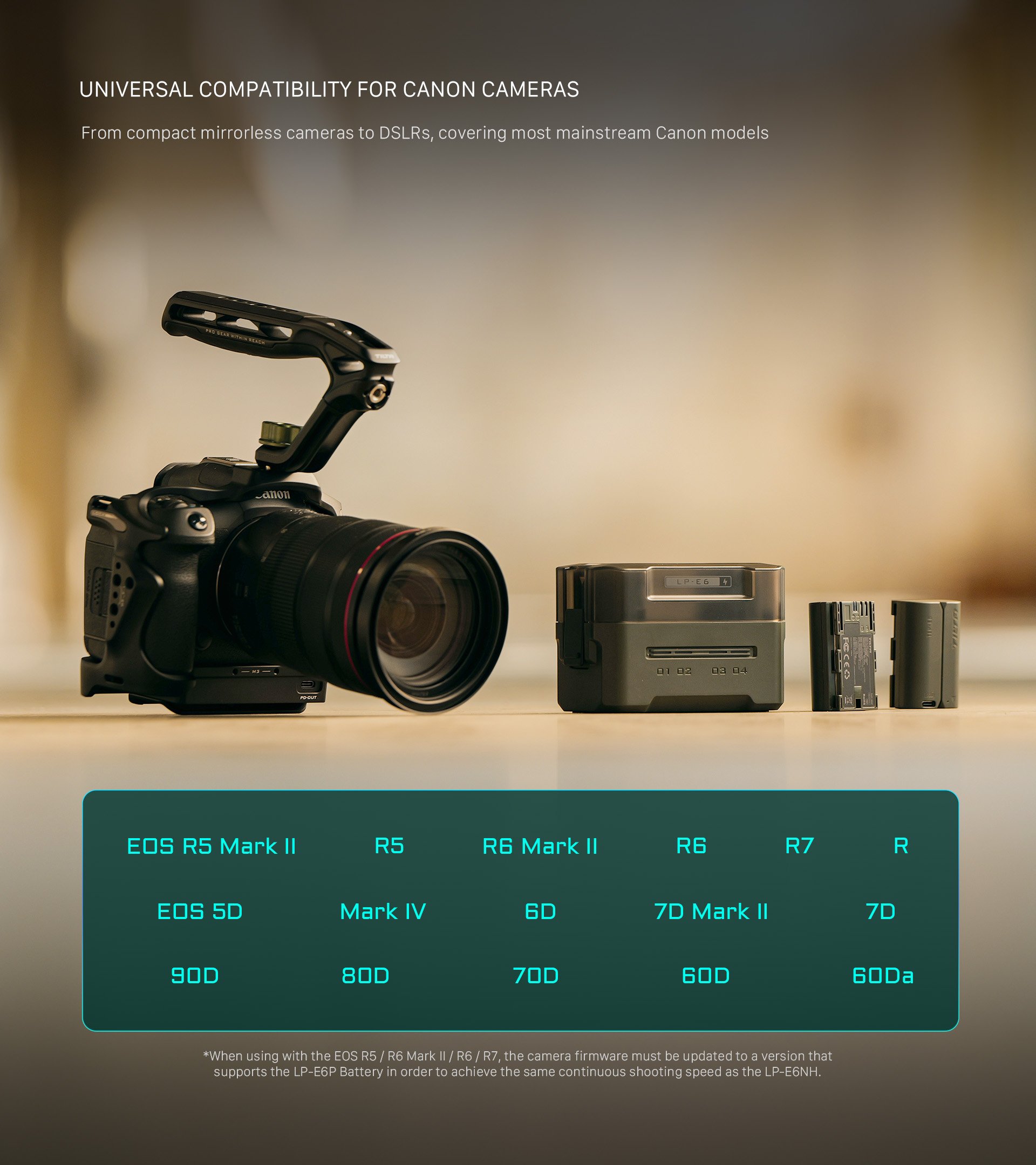 Vysokokapacitní baterie LP-E6P je navržena tak, aby poskytovala spolehlivou a dlouhotrvající energii pro váš fotoaparát a zajistila vám delší fotografování bez přerušení. Tato baterie je vybavena inovativním bateriovým článkem s vysokou hustotou energie a poskytuje prodlouženou výdrž, takže je ideální pro fotografování i natáčení videa.