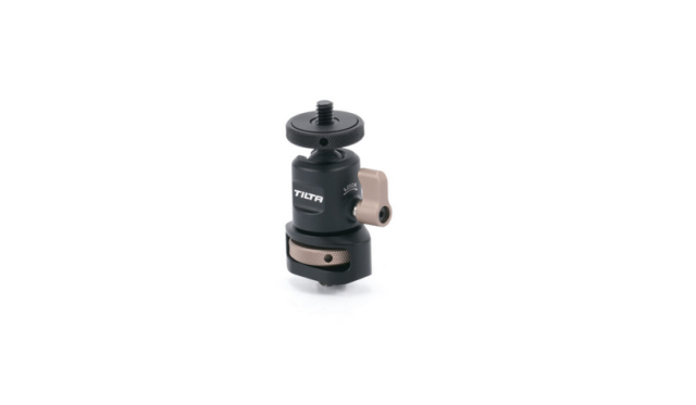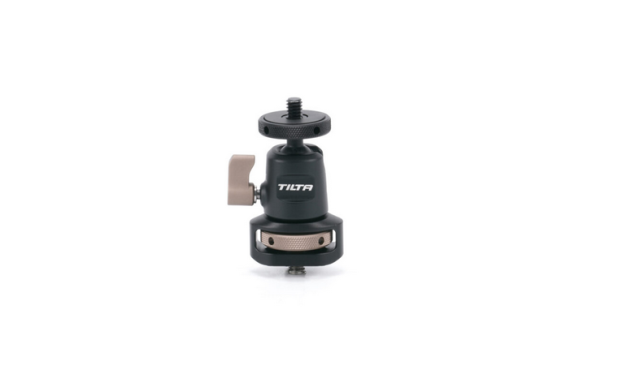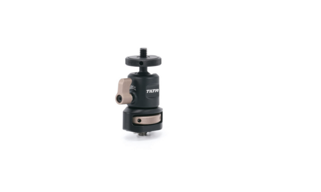 Držák Tilta Mini Ball Head Mount má bezpečnou uzamykatelnou konstrukci pro všestranné upevnění příslušenství, kompatibilní s různými klecemi na fotoaparáty a podpůrnými systémy.