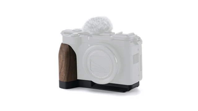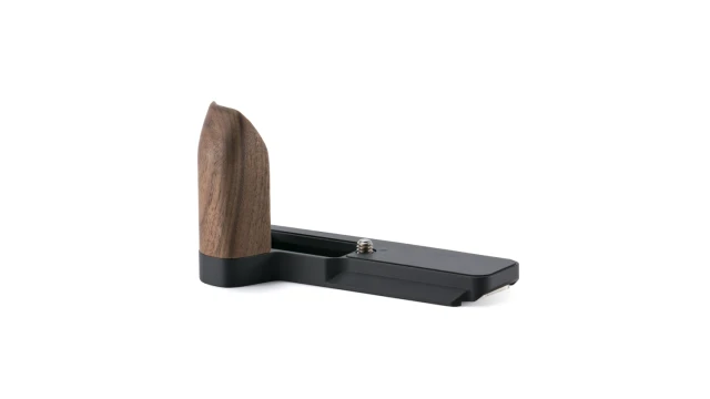 Představujeme montážní základnu s dřevěnou rukojetí pro fotoaparát Canon PowerShot V1. Základem tohoto příslušenství ve tvaru L-držáku je dřevěná rukojeť vyrobená z ořechového dřeva. Ta zajišťuje pohodlnější ovládání a manipulaci s fotoaparátem, přičemž zůstává kompaktní a vhodná na cestování.