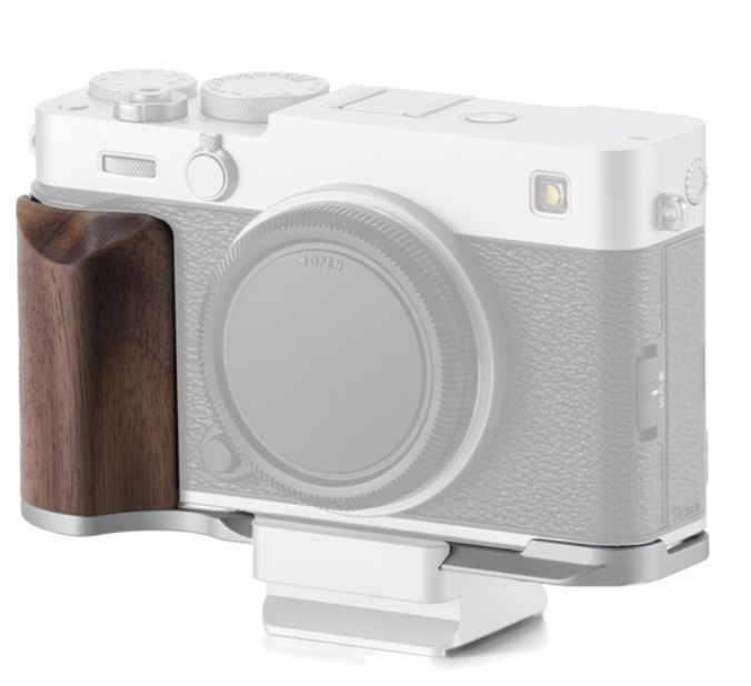Montážní základna Tilta TA-T91-WG-S s dřevěnou rukojetí (stříbrná) je elegantní systém rukojeti ve tvaru písmene L z hliníku a ořechového dřeva, vyrobený exkluzivně pro fotoaparát FUJIFILM X-E5. Kombinuje klasickou stříbrnou estetiku s vynikající ergonomií, plnou kompatibilitou s Arca-Swiss (deska se prodává samostatně) a volným přístupem ke všem ovládacím prvkům a dvířkům baterie, což představuje dokonalou kombinaci retro stylu a moderní funkčnosti.