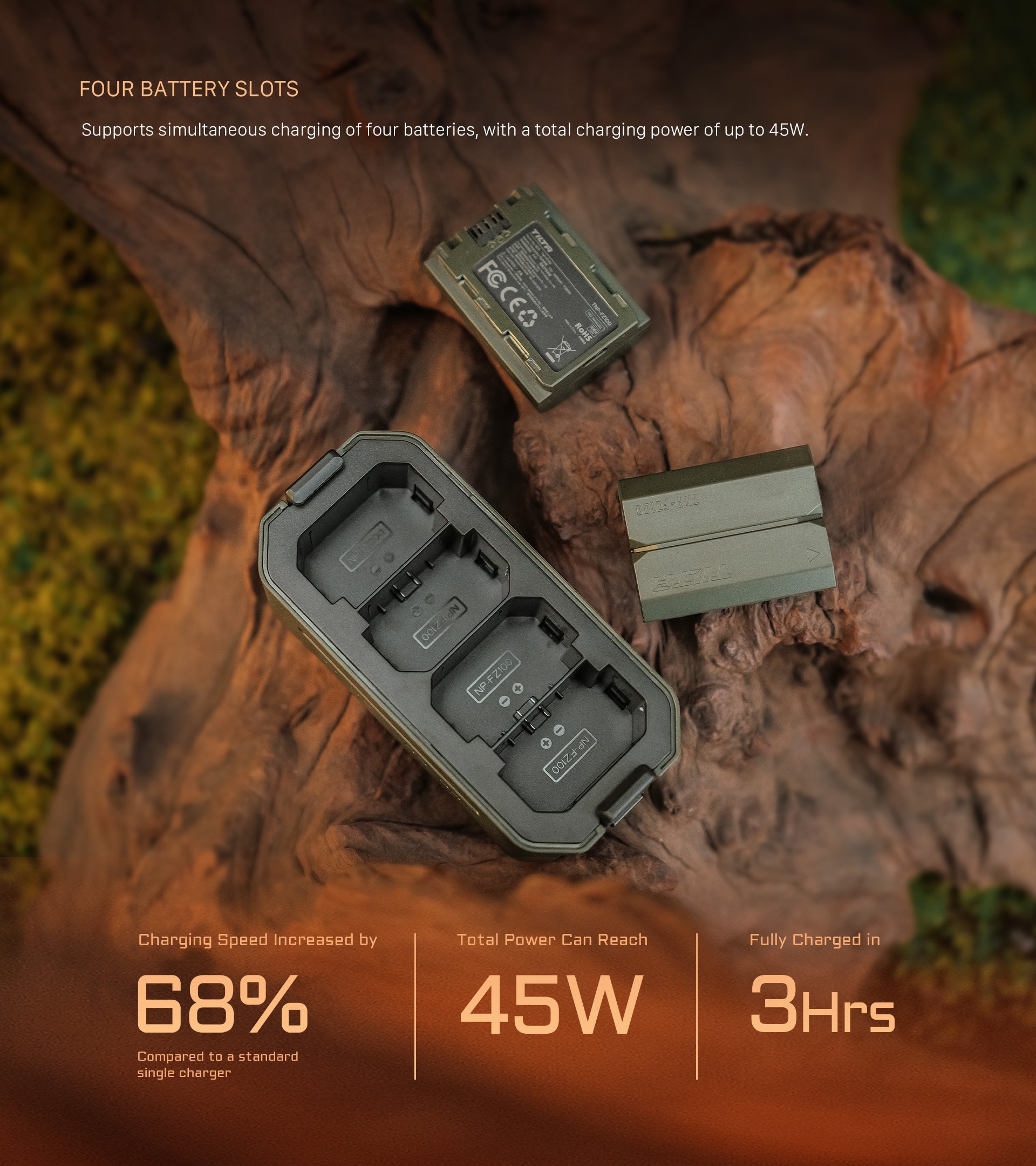 Ať už jste na profesionálním natáčení, nebo zachycujete osobní okamžiky, tato všestranná nabíječka vám poskytne potřebnou energii v praktickém přenosném balení.