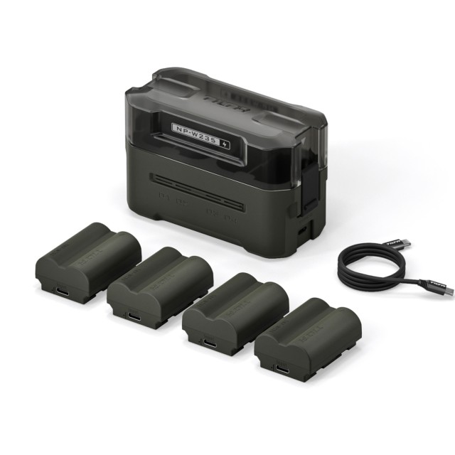 Tato kompaktní nabíjecí stanice je určena pro baterie Fujifilm a baterie NP-W235 jiných výrobců a nabízí čtyři sloty pro snadné nabíjení a pohodlné skladování.