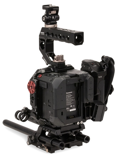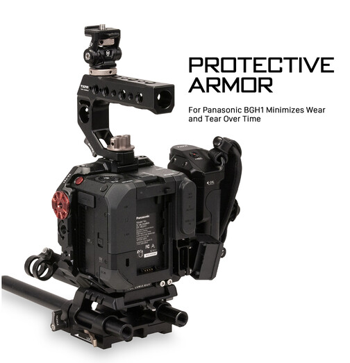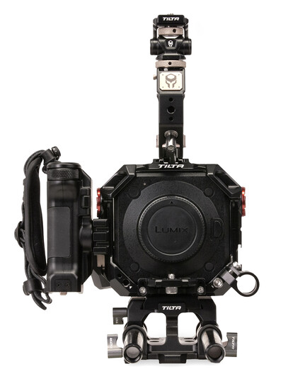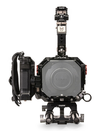 Sada Kit C od společnosti Tilta promění ultrakompaktní kameru Panasonic BGH1 v profesionální modulární filmovou kameru, aniž by přidávala zbytečnou hmotnost. Lehká hliníková klec obepíná především přední a boční strany, takže zůstává plný přístup ke všem portům a ovládacím prvkům, a zároveň poskytuje NATO lišty, ARRI rozety, několik studené patky, závity 1/4"-20 a 3/8"-16 a sedm spodních závitů pro stativ pro dokonalé vyvážení gimbalu. Součástí balení je 15mm LWS základová deska s 8″ tyčemi, která poskytuje pevnou oporu objektivu, držák adaptéru EF-mount bezpečně drží adaptéry Canon EF a pokročilá rukojeť Nucleus-Nano na pravé straně (napájená baterií Sony F570) umožňuje bezdrátové ovládání zaostření a spuštění/zastavení. Napínací držák monitoru s nastavitelným napětím, rychloupínací desky Arca a Manfrotto, prodlužovací kabel HDMI se speciální svorkou a spodní držák s jednou tyčí doplňují tento extrémně univerzální, všestranný produkční balíček.