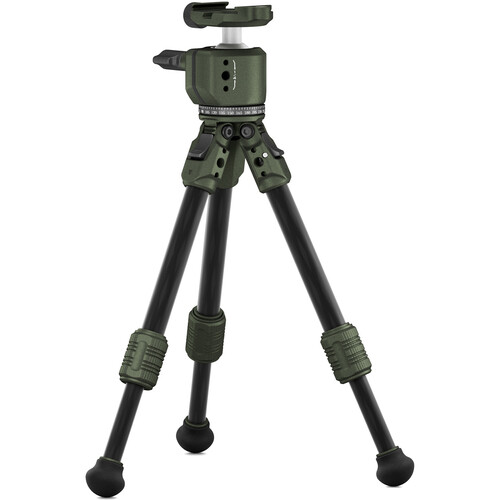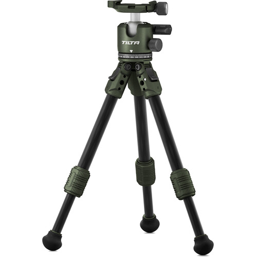 Stolní kulová hlava Tilta s 1stupňovými nohami z uhlíkových vláken v lesní zelené barvě je kompaktní, lehký stativ určený pro stabilní fotografování na jakémkoli povrchu s nosností 6,6 kg.