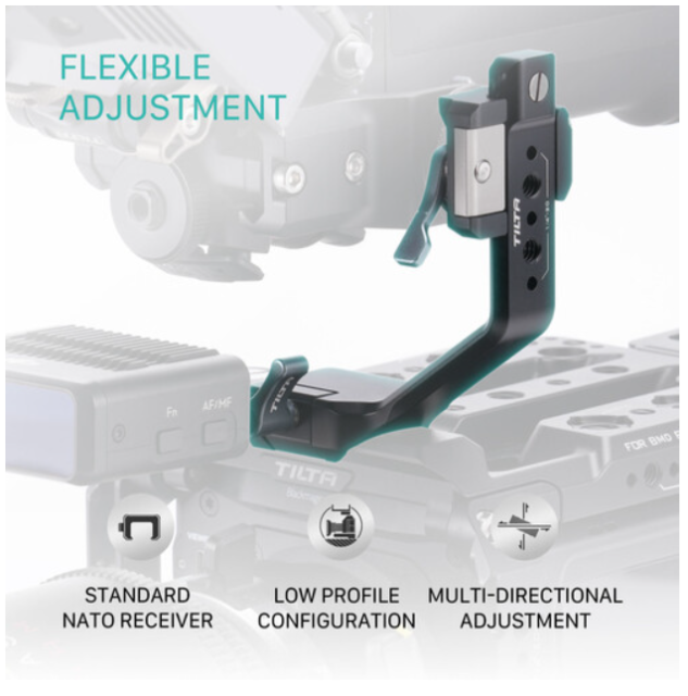 Adaptér horního držadla Tilta TGA-FPG-THA se hladce integruje s rukojetí DJI Focus Pro (systém automatického zaostřování LiDAR) a transformuje rukojeť na plně nastavitelnou ovládací jednotku přidáním pohodlné funkce horního držadla pro ruční ovládání zaostřování. Tento kompaktní adaptér, vyrobený z vysoce kvalitní hliníkové slitiny pro maximální poměr pevnosti a hmotnosti, se montuje přímo na rukojeť Focus Pro a poskytuje NATO lištu v plné délce s dvojitými bezpečnostními kolíky, které zabraňují náhodnému posunutí. Dvě další protiskrutkové 1/4"-20 vnitřní závity umožňují montáž monitorů, magic arms nebo jiného příslušenství bez obav z otáčení.