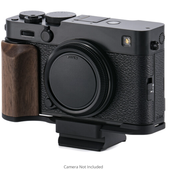 Tilta TA-T91-A-B Vintage Grip s podstavcem (černý) je krásně zpracovaný ergonomický hliníkový a ořechový dřevěný držák ve tvaru L, navržený exkluzivně pro fotoaparát FUJIFILM X-E5. Kombinuje retro styl s moderní funkčností díky pohodlnému dřevěnému držadlu, plné kompatibilitě s Arca-Swiss a úplnému přístupu ke všem ovládacím prvkům fotoaparátu a bateriovému prostoru.