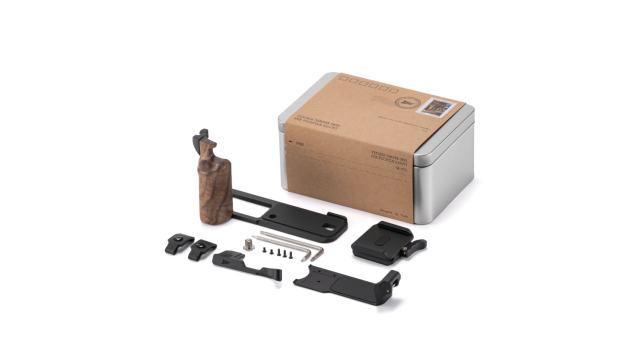 Základem této sady je L-Bracket s dřevěnou rukojetí vyrobenou z ořechového dřeva, která poskytuje pohodlnější způsob ovládání a manipulace s fotoaparátem.