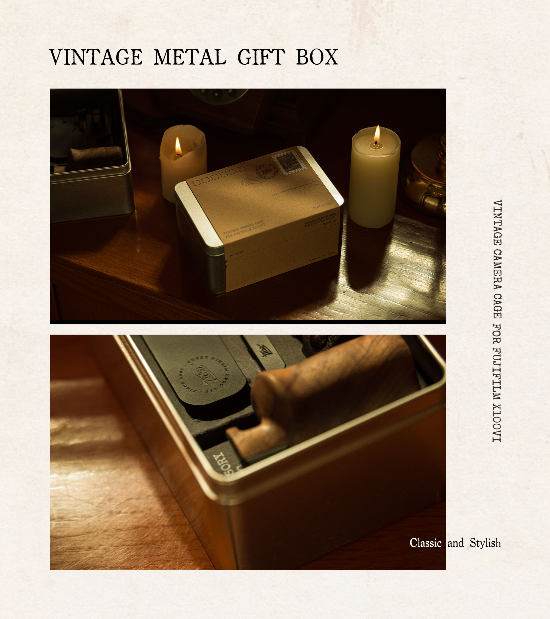 Představujeme Vintage Camera Cage pro cestovní sadu Fujifilm X100VI. Tato sada obsahuje řadu lehkého příslušenství, které zlepšuje funkčnost fotoaparátu X100VI a zároveň zachovává kompaktní, ale výkonný systém. Základem této sady je L-Bracket s dřevěnou rukojetí vyrobenou z ořechového dřeva, která poskytuje pohodlnější způsob ovládání a manipulace…