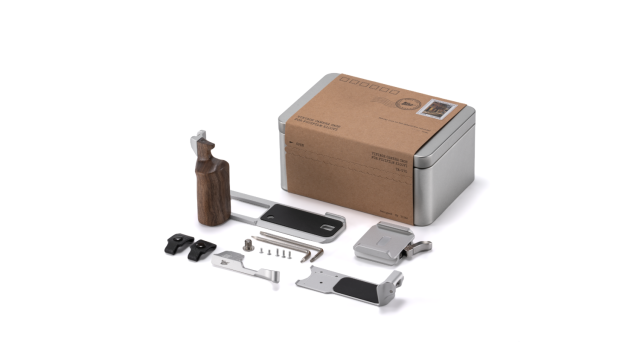 Základem této sady je L-Bracket s dřevěnou rukojetí vyrobenou z ořechového dřeva, která poskytuje pohodlnější způsob ovládání a manipulace s fotoaparátem.