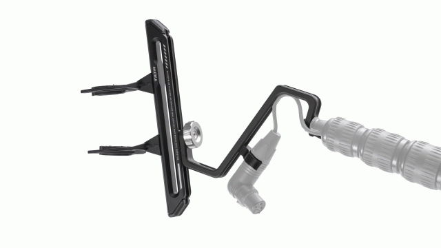 Neoddělitelnou součástí konstrukce je ovládací držák, který se připevňuje k zadnímu konci výložníku a umožňuje snadné nastavení směru mikrofonu.