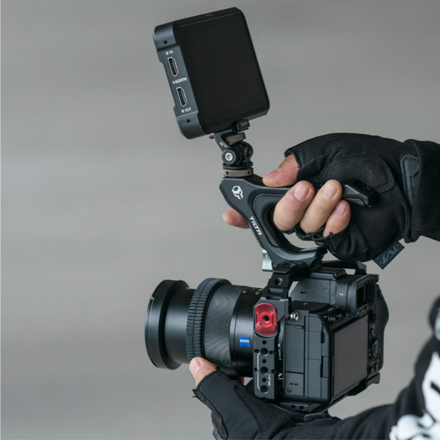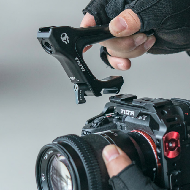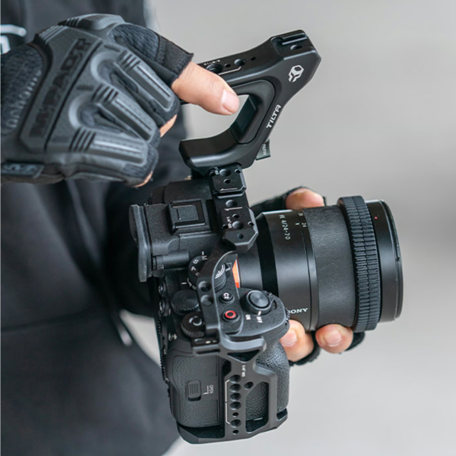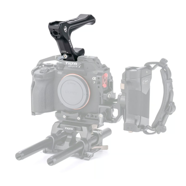 Tato horní rukojeť se snadno a bezpečně připevní k horní části plné klece fotoaparátu Sony a7 IV.