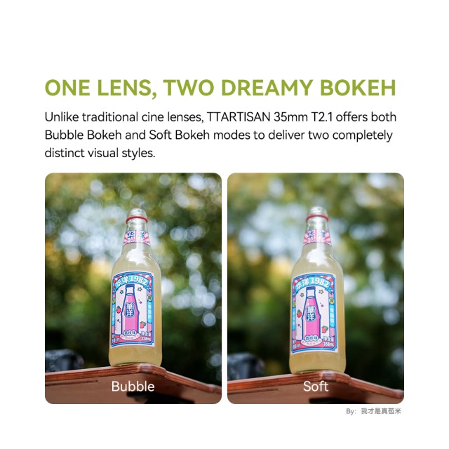 Unlike traditional cine lenses, TTARTISAN 35mm T2.1 offers both Bubble Bokeh and Soft Bokeh modes to deliver two completely distinct visual styles.