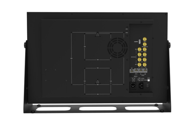 Připojení zahrnuje čtyři vstupy 12G-SDI se smyčkovými výstupy, vstup/výstup quad-link 3G-SDI, vstup HDMI 2.0, dva sloty SFP a referenční vstup. Monitor podporuje konverzi HDMI na SDI a SFP na SDI, vstup quad-link 12G na výstup single-link 12G a režimy zobrazení quad-view nebo dual-view pro produkční sestavy s více kamerami.