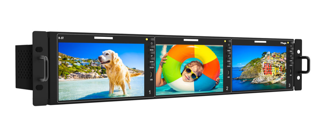 TVLogic TVL-R-5T je profesionální 2U racková sada obsahující tři 5,5" Full HD monitory s vstupy 12G-SDI, 3G-SDI a HDMI 1.3. Každý monitor poskytuje ostré rozlišení 1920 x 1080 při jasu až 500 cd/m² a je vybaven pokročilými video nástroji, včetně zobrazení vlnové formy, vektorskopu, časového kódu a monitorování úrovně zvuku pro přesné nastavení více kamer.
