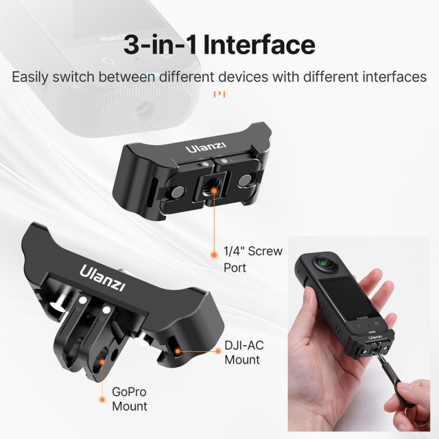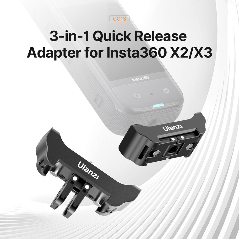 Adaptér Ulanzi 3 v 1 s rychlým uvolňováním pro Insta360 X3/X2 je univerzální řešení pro připevnění pro nadšence akčních kamer. Adaptér je navržen pro kamery Insta360 X3 a X2 a umožňuje rychlé a bezpečné připevnění ke standardním tříbodovým držákům, stativům se závitem 1/4"-20 nebo magnetickým držákům příslušenství DJI.