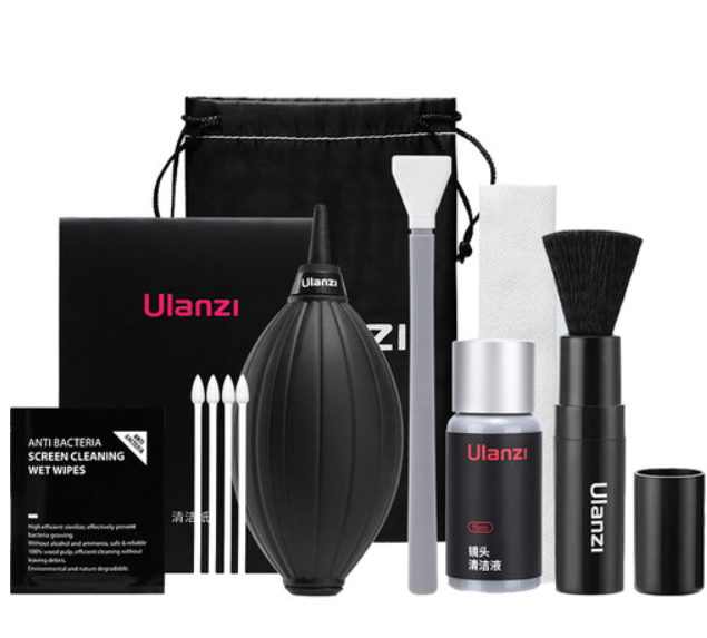 Čisticí sada Ulanzi Ulanzi3173 9v1 je černé pouzdro o hmotnosti 98 g, které odstraňuje prach ze senzorů, objektivů, LCD displejů a skel GoPro pomocí antistatické kapaliny, mikrovláknové stěrky, hedvábného hadříku, 4 tamponů, foukačky, kartáčku a 2 vlhčených ubrousků. Žádné šmouhy, žádné vlákna – vaše zařízení Canon/Fuji/Sony/Insta360 zůstane čisté za pouhých 60 sekund.