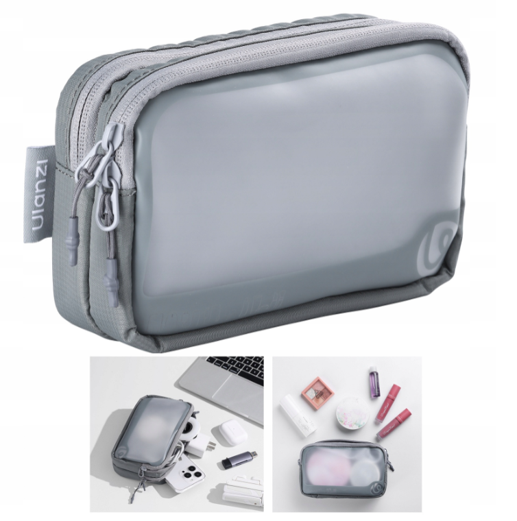 BP15 je vyroben z ekologického matného TPU v kombinaci s polyesterem, je odolný, odolný proti oděru a vodotěsný, chrání obsah před postříkáním a drobnými rozlitími. Jeho průhledný design vám umožní rychle identifikovat předměty uvnitř, zatímco dvě samostatné přihrádky – každá s vlastním hladce fungujícím zipem – usnadňují a zefektivňují organizaci.