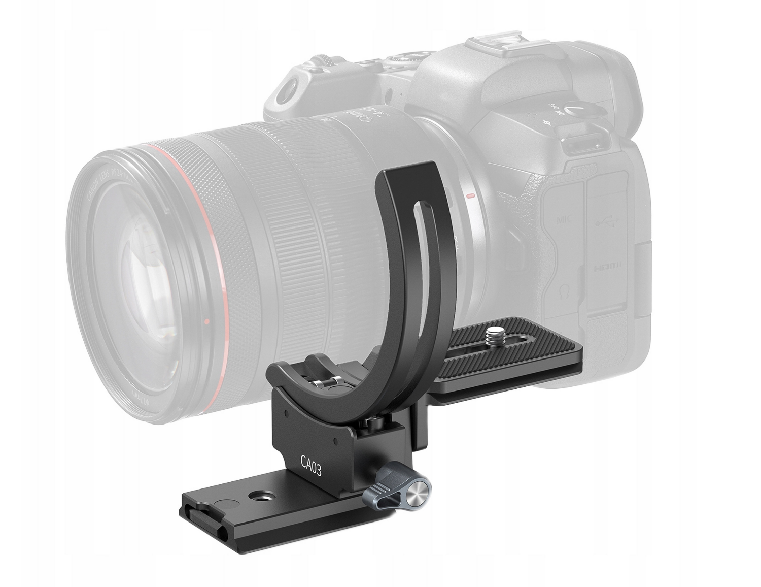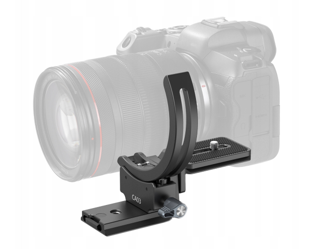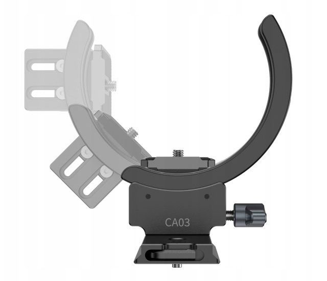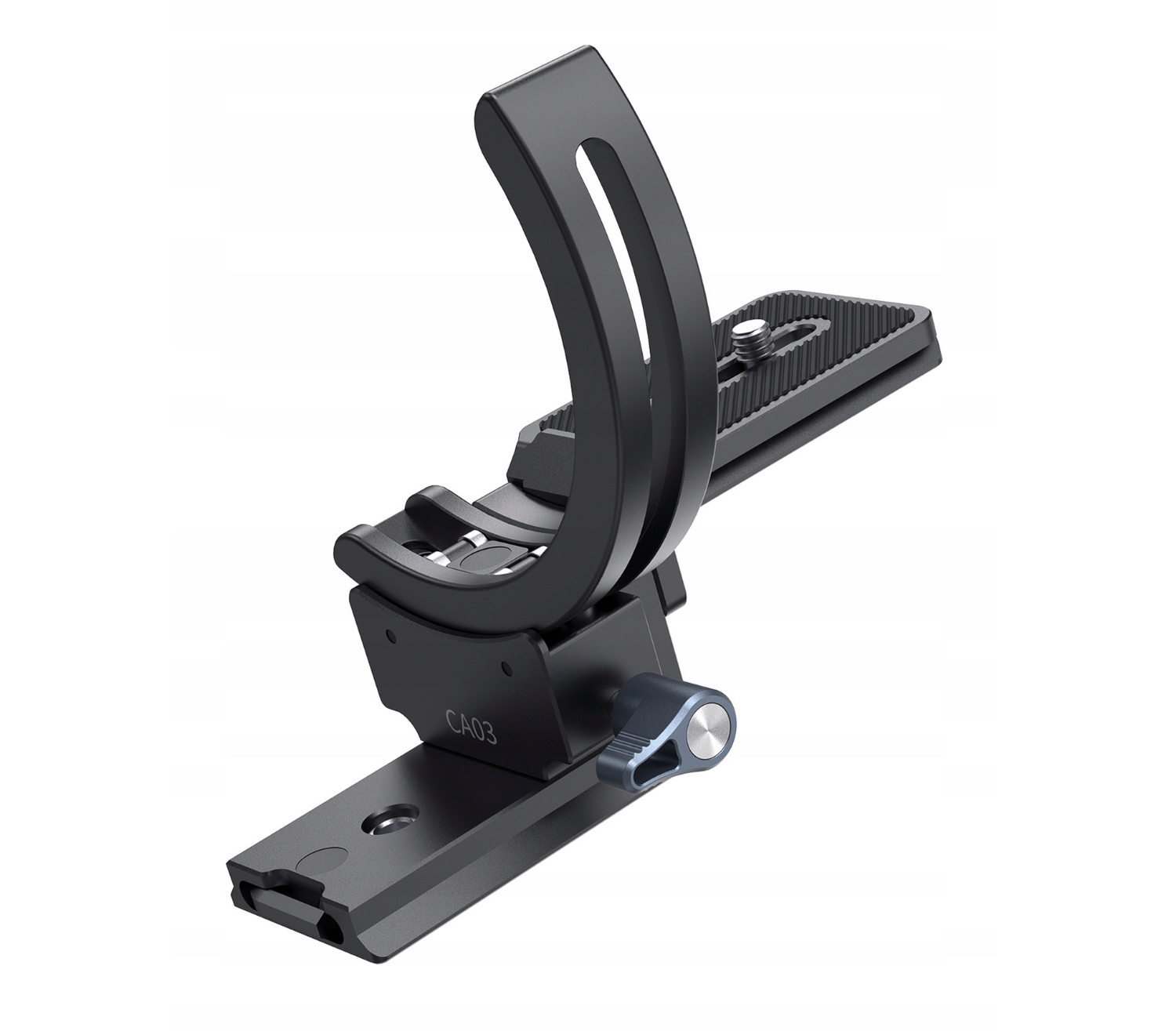 Nastavitelná výška platformy umožňuje jemné doladění pro různé konstrukce objektivů, zatímco polokruhový design límce umožňuje instalaci bez nutnosti demontáže objektivu z fotoaparátu. CA03 je vyroben z odolného hliníku a oceli odolného proti poškrábání a korozi a podporuje objektivy o hmotnosti až 5 kg, přičemž si zachovává lehkou a přenosnou formu.
