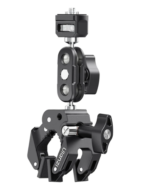 Jeho robustní super svěrka má konstrukci se třemi čelistmi, která zajišťuje pevné uchopení na plochých i kulatých površích, zatímco přiložené magické rameno s dvojitou kulovou hlavou umožňuje polohování v plném rozsahu 360°. Díky tomu lze snadno dosáhnout kreativních úhlů, jako jsou záběry shora, osvětlení z nízkého úhlu nebo boční monitorovací sestavy.