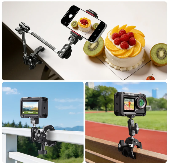 Sada Ulanzi CO78 Super Clamp Magic Arm s dvojitou kulovou hlavou (C084) představuje univerzální řešení pro upevnění, určené pro tvůrce, kteří potřebují flexibilní a stabilní umístění. Díky odolné super svorkě s dvojitou kulovou hlavou a výsuvným ramenem se dá spolehlivě připevnit ke stolům, lištám, stativům a dalším povrchům a umožňuje přesné nastavení úhlu pro kamery, světla, telefony a další příslušenství. Je kompaktní, ale výkonná, a je tak ideální jak pro studiové, tak pro venkovní použití.