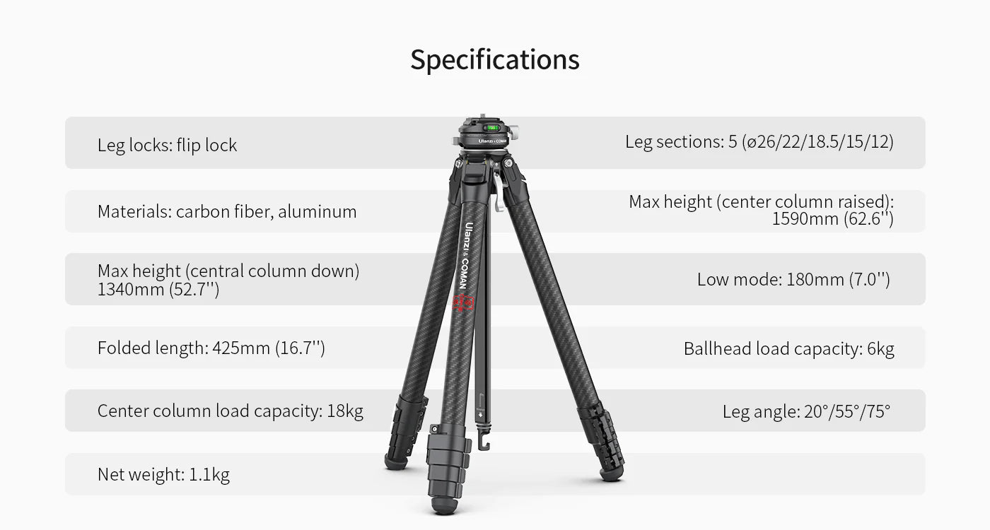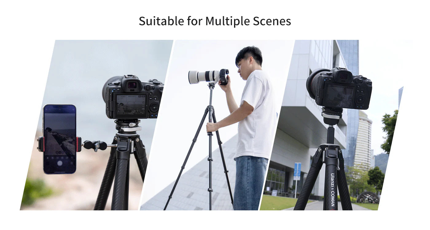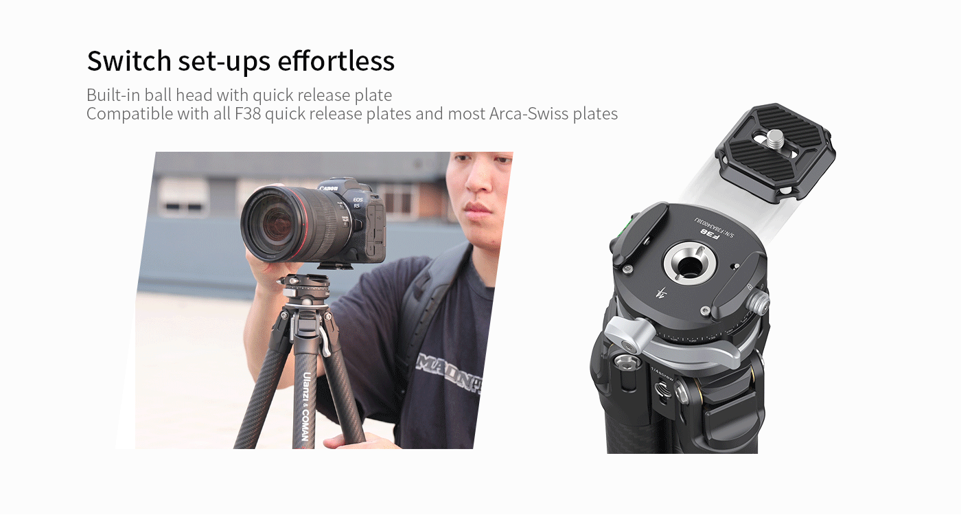 Rychloupínací cestovní stativ Ulanzi Zero F38: Zachyťte úžasné záběry na cestách s tímto kompaktním a lehkým (1,1 kg) cestovním stativem z uhlíkových vláken. Díky integrované kulové hlavě a rychloupínací desce F38 můžete snadno přepínat mezi různými nastaveními, zatímco přiložený přídavný středový sloupek nabízí kompatibilitu s Arca-Swiss pro maximální flexibilitu. Fotografujte z různých úhlů díky nastavitelným polohám nohou (20°/55°/75°) a odnímatelnému krátkému sloupku pro snímky z nízkého úhlu. Stativ Ulanzi Zero F38 je vyroben tak, aby vydržel, unese až 18 kg a všechny jeho části jsou opravitelné s doživotní zárukou. Popusťte uzdu své kreativitě a zachyťte nezapomenutelné okamžiky, ať jste kdekoli!