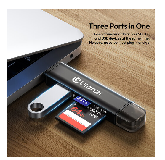 Funkce 3 v 1: Podporuje připojení SDXC, microSDXC a USB-A 2.0, což umožňuje rychlý přenos mezi různými zařízeními.