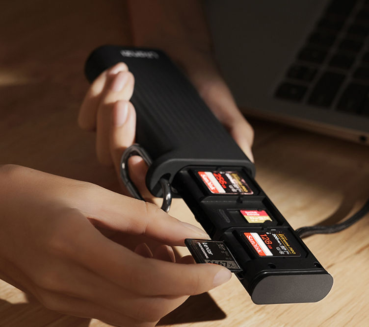 Díky podpoře karet SD formátů UHS-I a UHS-II i Micro SD zajišťuje CR2 rychlý a spolehlivý výkon na různých zařízeních, včetně fotoaparátů, smartphonů, dronů a akčních kamer. Jeho dva sloty pro karty umožňují simultánní čtení, zatímco technologie USB 3.1 poskytuje ultrarychlé přenosové rychlosti až 312 MB/s – což vám umožní přenést 1 GB dat během pouhých několika sekund.