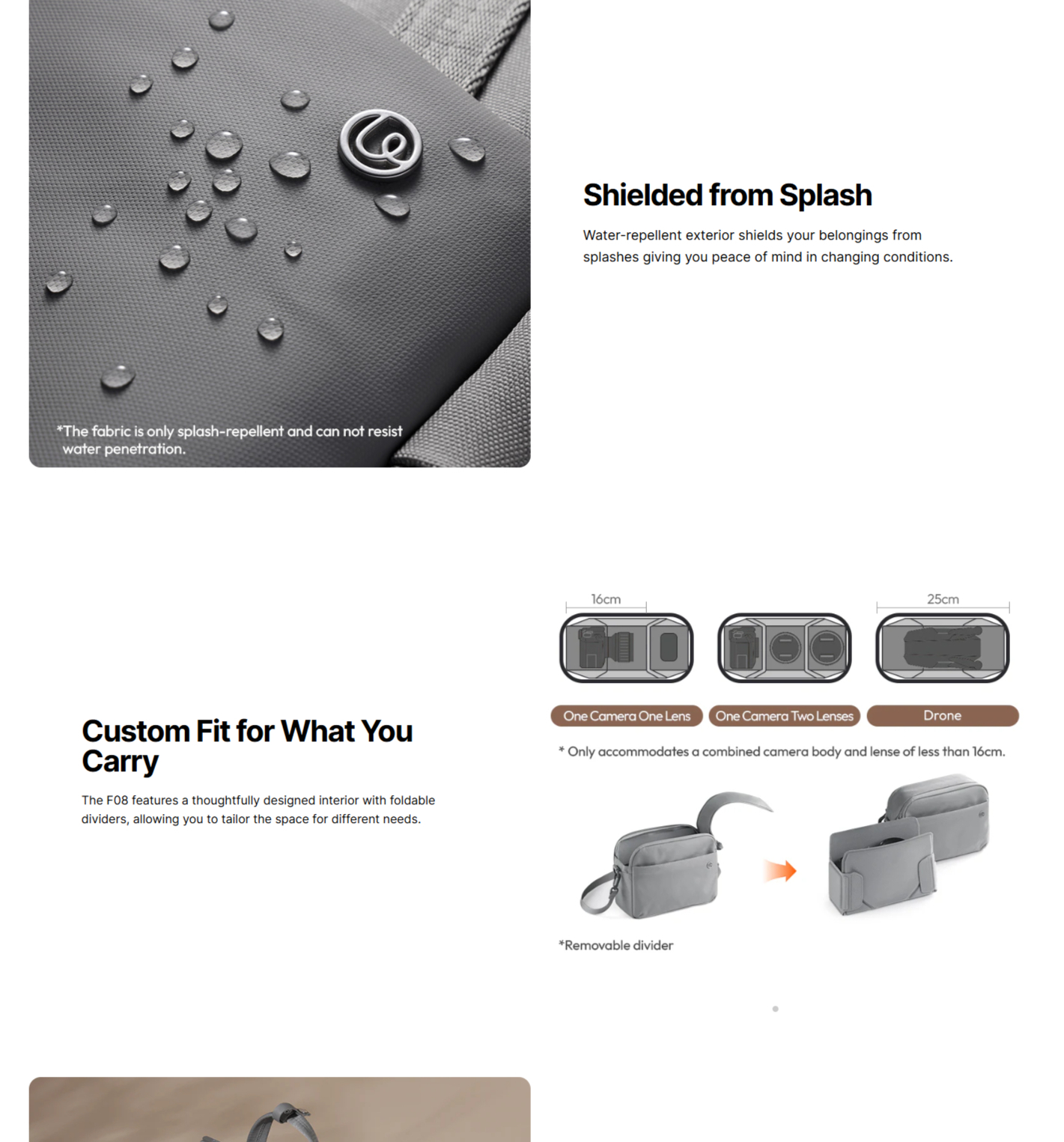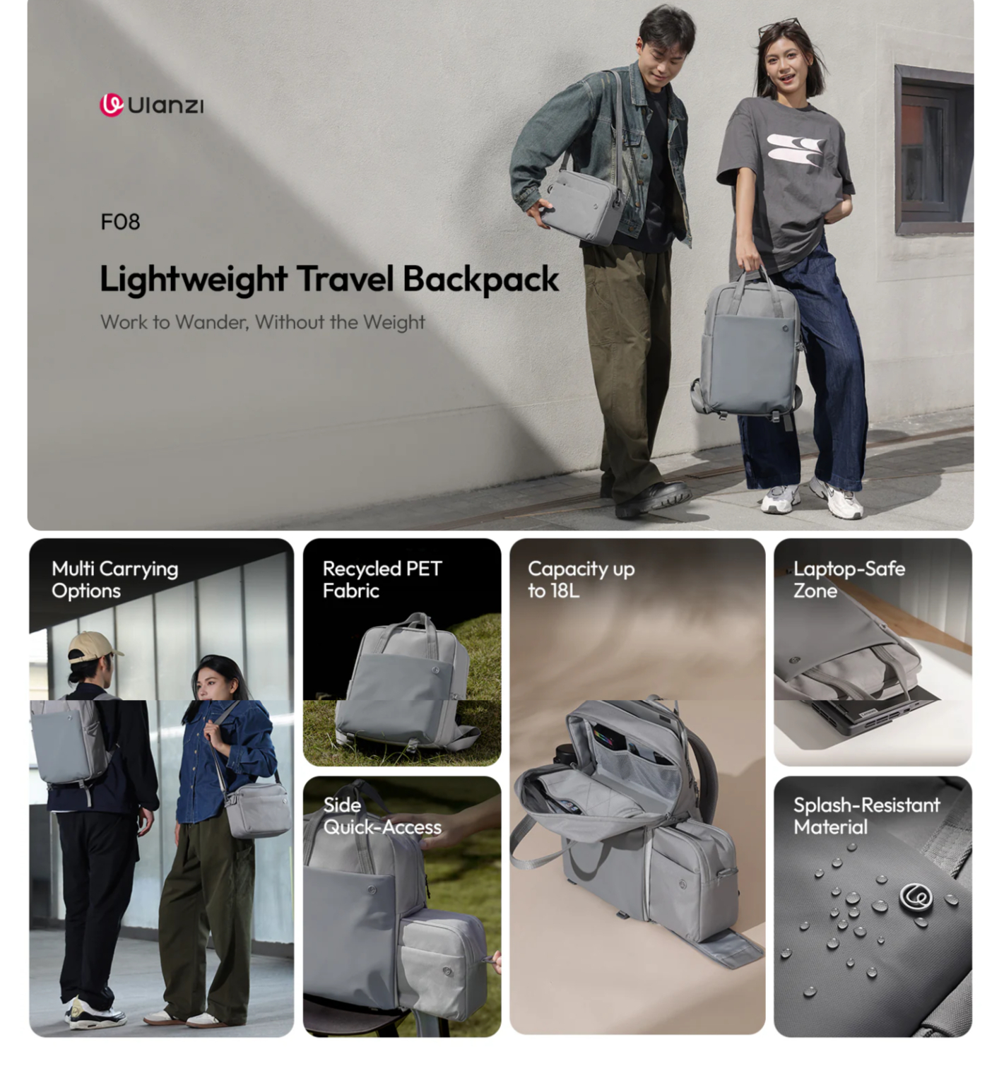Vylepšete své fotografické a cestovatelské zážitky s lehkým cestovním batohem Ulanzi F08 18L. Tato univerzální taška 2 v 1, vážící pouze 1,2 kg, je vybavena odnímatelnou vnitřní kapsou pro flexibilní použití jako batoh, taška přes rameno nebo sling. Je vyrobena z odolné, voděodolné recyklované tkaniny a hladkých zipů YKK a nabízí spolehlivou ochranu pro vaše vybavení. S objemem 18 litrů se do něj vejdou 16palcové notebooky, zrcadlovky, bezzrcadlovky, objektivy a stativy. Přizpůsobitelné skládací přepážky a uspořádání shora dolů zajišťují snadnou organizaci, zatímco boční přístupový panel umožňuje rychlé vytažení vybavení. Ideální pro fotografy, vlogery a cestovatele.