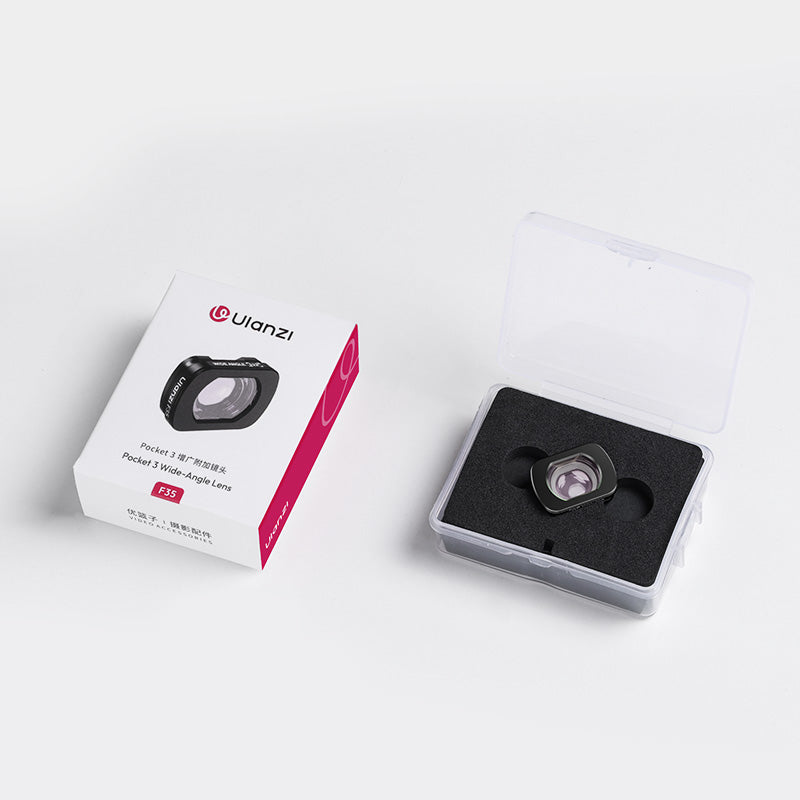 Širokoúhlý objektiv Ulanzi F35 pro DJI Osmo Pocket 3 – magnetický objektiv s úhlem záběru 112°. Rozšiřte své kreativní možnosti s širokoúhlým objektivem Ulanzi F35, který byl navržen exkluzivně pro DJI Osmo Pocket 3. Díky zornému poli 112° vám tento ultralehký objektiv umožní zachytit více v každém snímku – je ideální pro cestovní vlogy, skupinové fotografie a poutavé vyprávění příběhů.