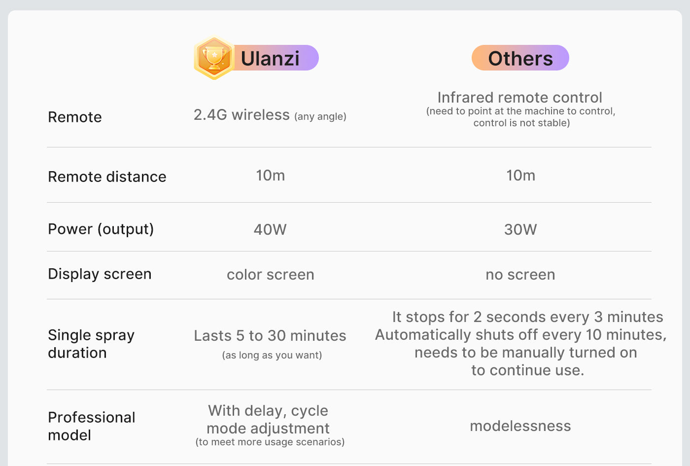 - Doporučená provozní teplota produktu je 5 °C až 45 °C. Pokud je teplota příliš nízká, může to ovlivnit vedení mlhové kapaliny.