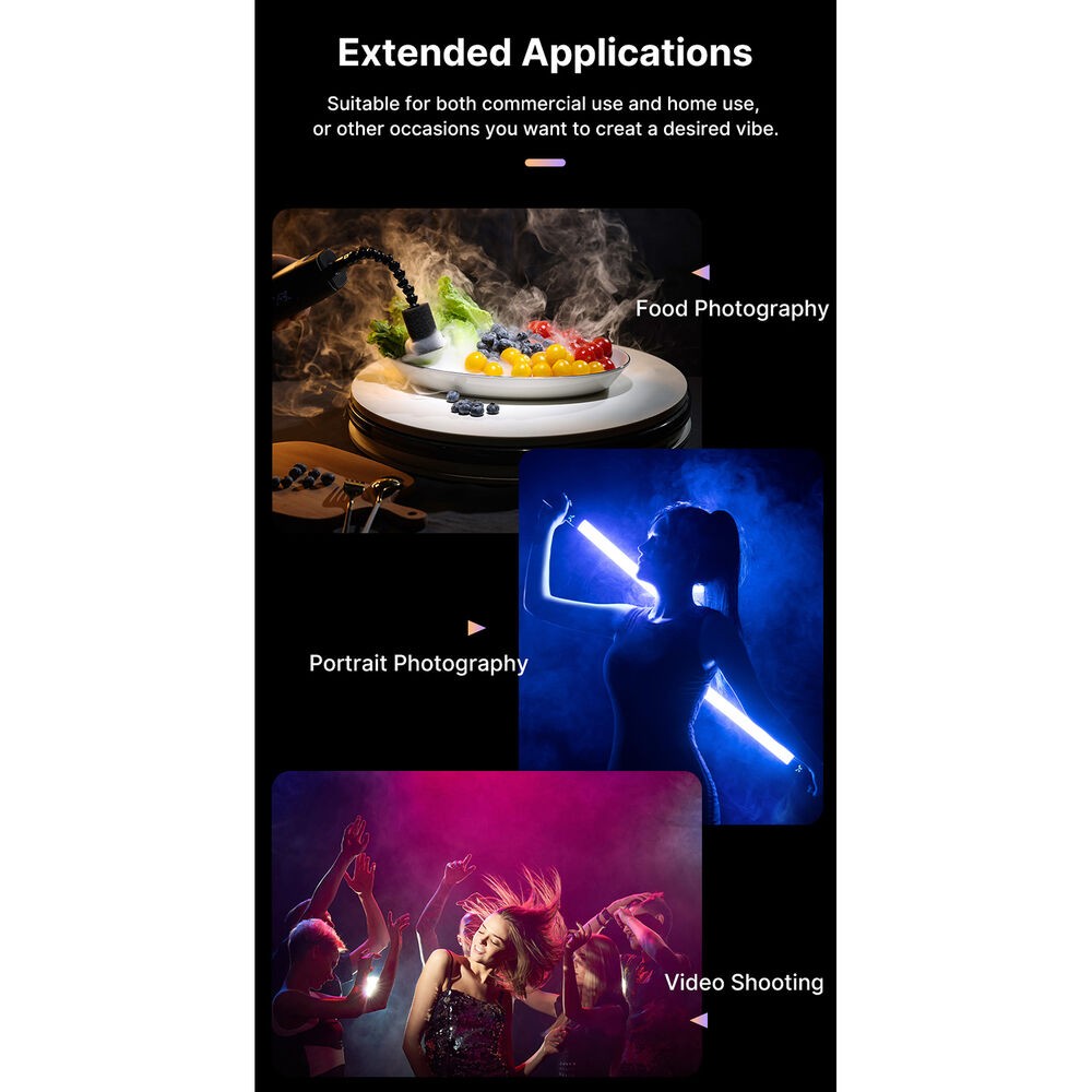 Vylepšete své fotografie, akce a kreativní projekty pomocí přenosného mlhovače Ulanzi FM01 FILMOG Ace. Tento ruční mlhovač o výkonu 40 W nabízí všestranné mlhové efekty v malém, přenosném provedení. Díky 36 nastavitelným režimům můžete ovládat intenzitu a rychlost mlhy a vytvářet dramatickou nebo jemnou atmosféru pro večírky, svatby, focení nebo divadelní představení.