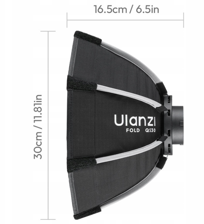 Součástí softboxu je voštinová mřížka, která zužuje světelný paprsek pro lépe kontrolovatelné osvětlení, a difuzér na suchý zip, který zajišťuje přirozené světlo bez stínů. Stříbrný reflexní vnitřek maximalizuje účinnost a kontrast, zatímco mechanismus rychlého uvolnění zajišťuje snadné připevnění a sejmutí. S hmotností pouhých 0,3 kg a rozměry po složení 42 × 20 cm je model QS30 ideální pro mobilní sestavy a venkovní focení.